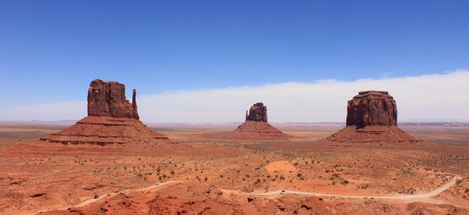 Dann fahren wir zum Monument Valley und damit wieder über eine Staatengrenze von Arizona nach Utah. Soweit nichts besonderes, aber da Hawaii und eben auch Arizona keine Sommerzeit haben, müssen wir die Uhren mal wieder umstellen. Wird ja bald Routine. Die Anfahrt auf die roten Zeugenberge ist schon toll.