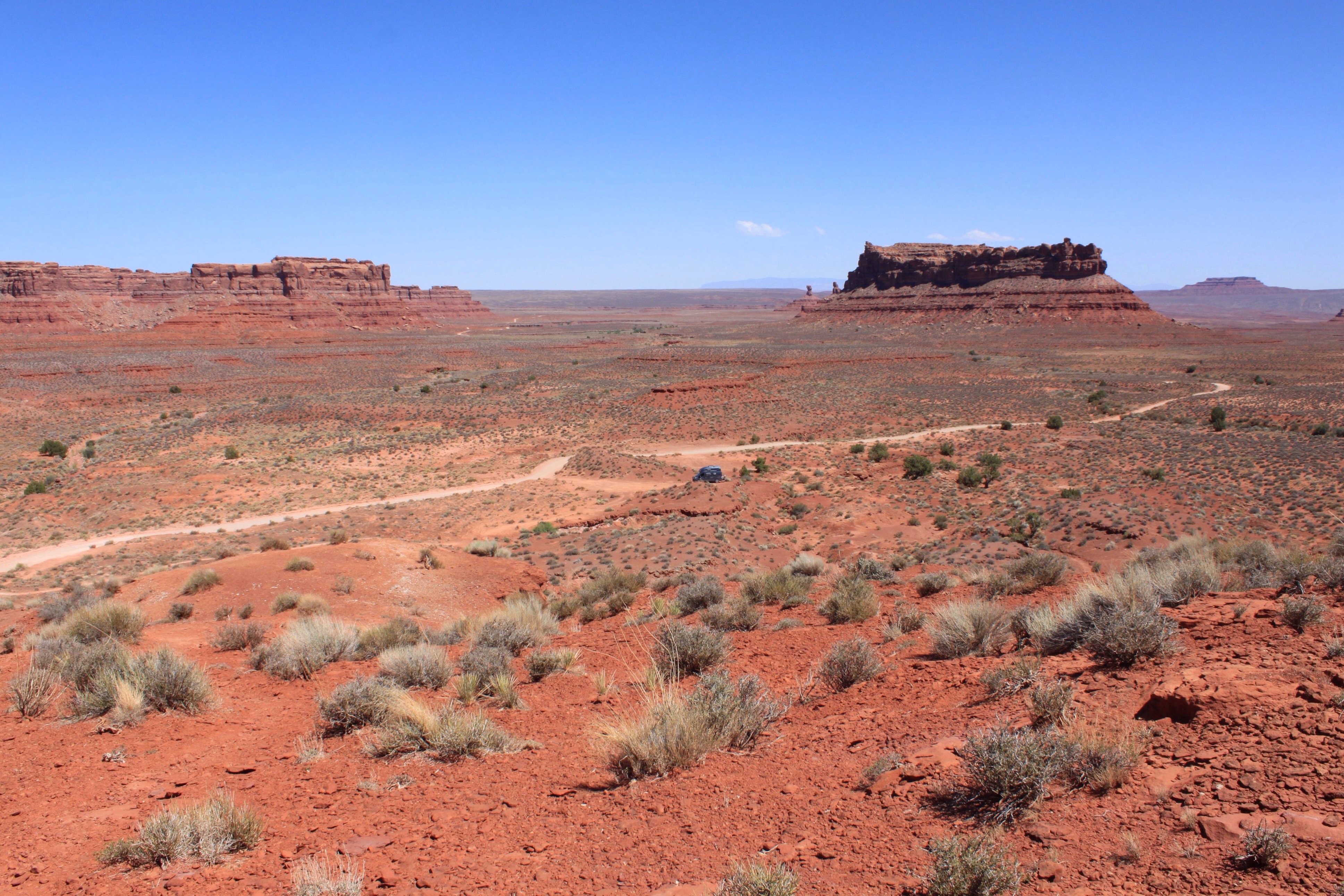 Der Reiseführer schreibt, die Grevel /Dirtroat durch das Valley of the Gods ist für Fahrzeuge mit genügend Bodenfreiheit befahrbar. Keinesfalls für RV’s oder bei Nässe. Das Valley soll dem Monument Valley in nichts nachstehen. Das reizt uns natürlich, und wir versuchen es.