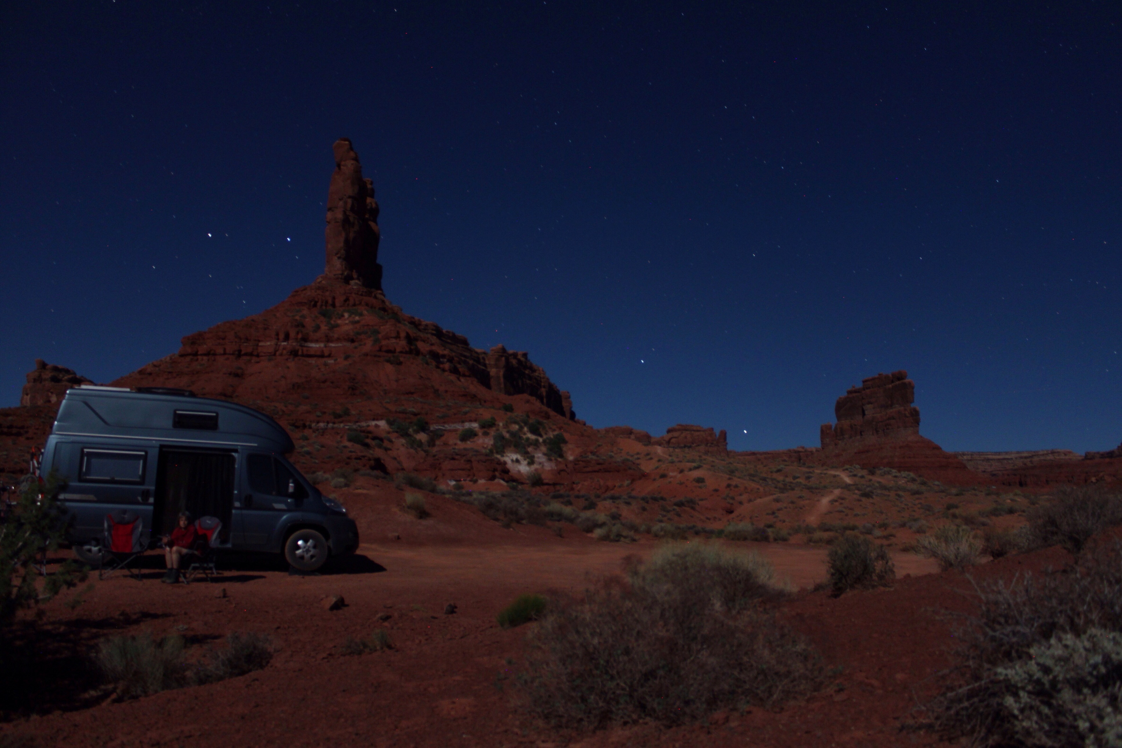 Und nach einem klasse Sonnenuntergang im „Göttertal“ zeigen sich im Mondlicht genug Sterne.