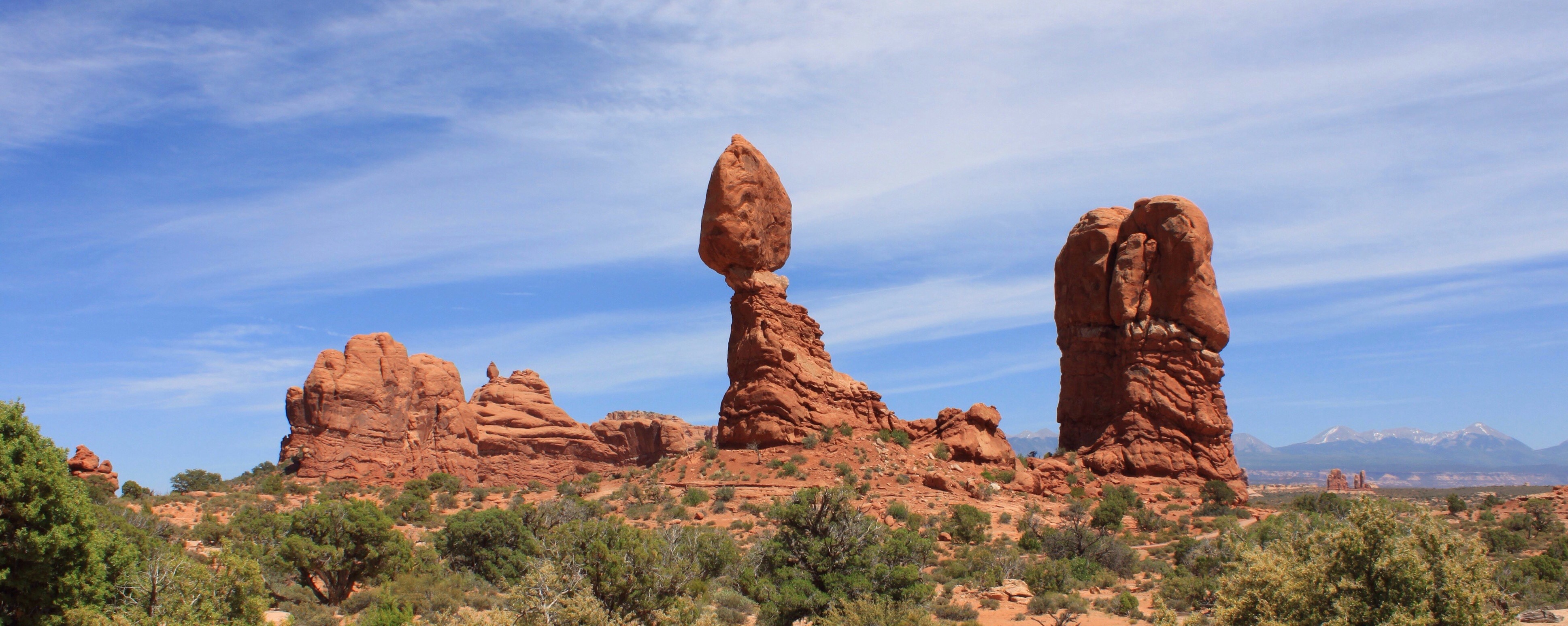 Die erste Skurrilität im Arches NP ist der Balanced Rock und wir überlegen, wann der wohl runter fällt. Bei knapp 40m Höhe rumst das dann gewaltig.😇