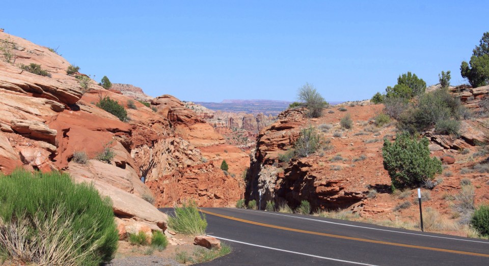 In einem Reiseführer haben wir gestern Abend noch gelesen, dass die 12 über Grover und Escalante zum Bryce Canyon landschaftlich schön sein soll. Also fahren wir den Umweg…