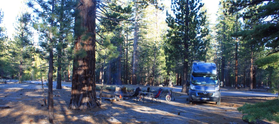 Nach so vielen Bildern und Eindrücken in den letzten Tagen machen wir erst mal „Pause“ und suchen uns, nach ausgiebigem Einkauf und „Waschtag“ in Mammoth Lakes, einen ruhigen Campground mitten im Wald, auf dem wir zwei Tage und Nächte fast allein sind.