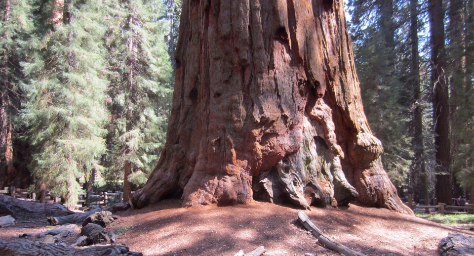 Heute sind die Dicken angesagt, nein, nicht die übergewichtigen Amerikaner, sondern ganz dicke Bäume. Im direkt angrenzendem Sequoia NP stehen die meisten noch erhaltenen Sequoias in Nordamerika. Die größten sind bis zu 2500! Jahre alt und haben eine Basis von bis zu 40′ im Durchmesser (in richtigen Maßen ca. 12m). Unvorstellbar, auch wenn man davor steht kann man es kaum glauben. Dieser Baum hat eine jährliche Zunahme der Holzmenge eines normalen 20 m hohen Baumes.