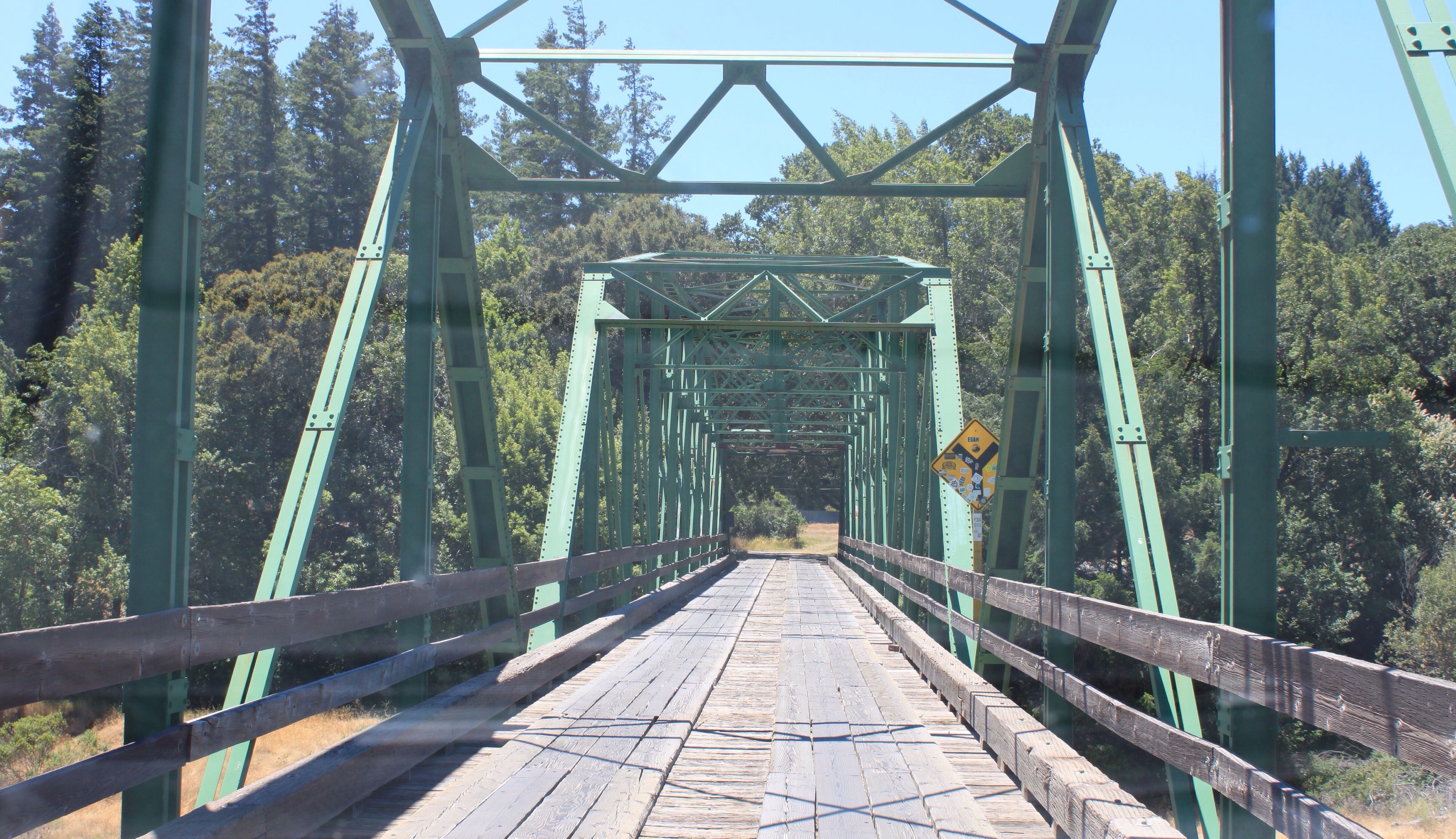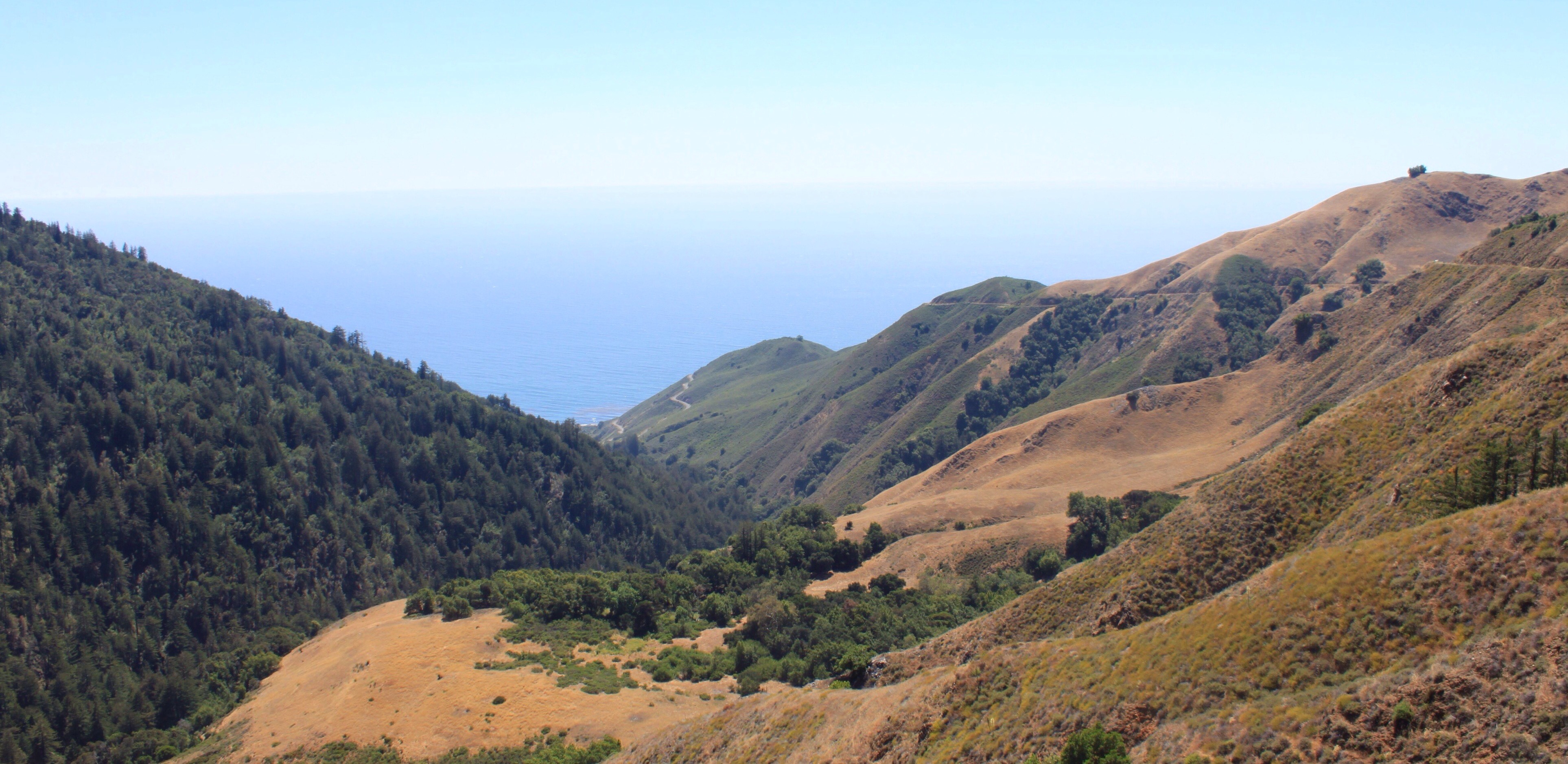 Die Ranger, die morgens ihre Runde drehen, halten zum Klönen bei uns an, und wir bekommen den Tipp, die Coast Ranges auf einer kleinen Nebenstraße zu überqueren, um direkt nördlich von dem gesperrten Teilstück des Hwy1 an die Küste zu kommen. Die Straße ist in unserer Karte als Gravelroad eingezeichnet, aber sie schwören, dass sie paved (asphaltiert) ist. Wir verlassen uns auf ihre Aussage und machen uns auf den Weg… Die Straße führt zuerst durch ein Militärfort und kurvt dann unter schattigen Bäumen immer höher in die Berge, echt ein toller Tipp.