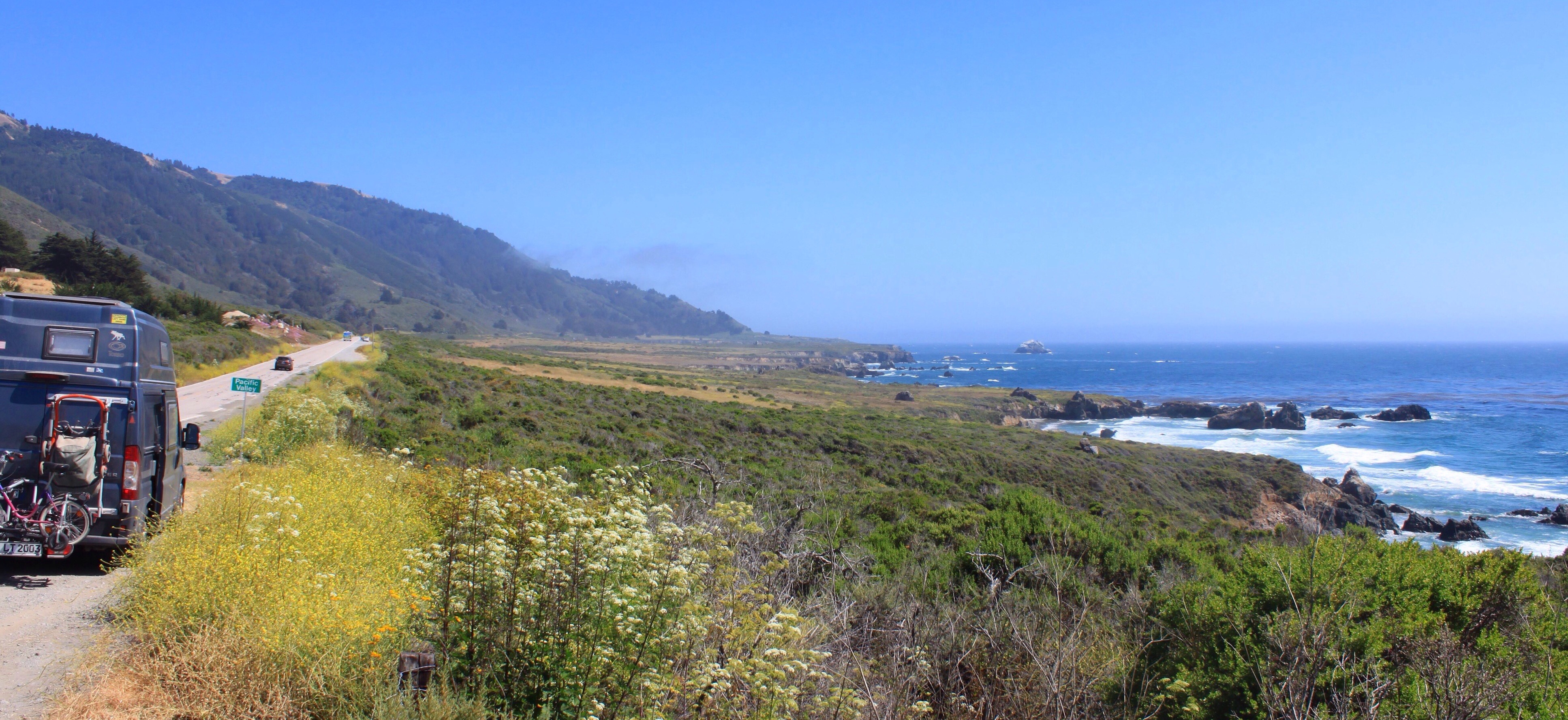 Da der Küstenhighway südlich von uns durch einen Erdrutsch beschäftigt, und so voraussichtlich das gesamte Jahr 2018 noch gesperrt ist, können wir an einen Pullout direkt in erster Reihe übernachten.