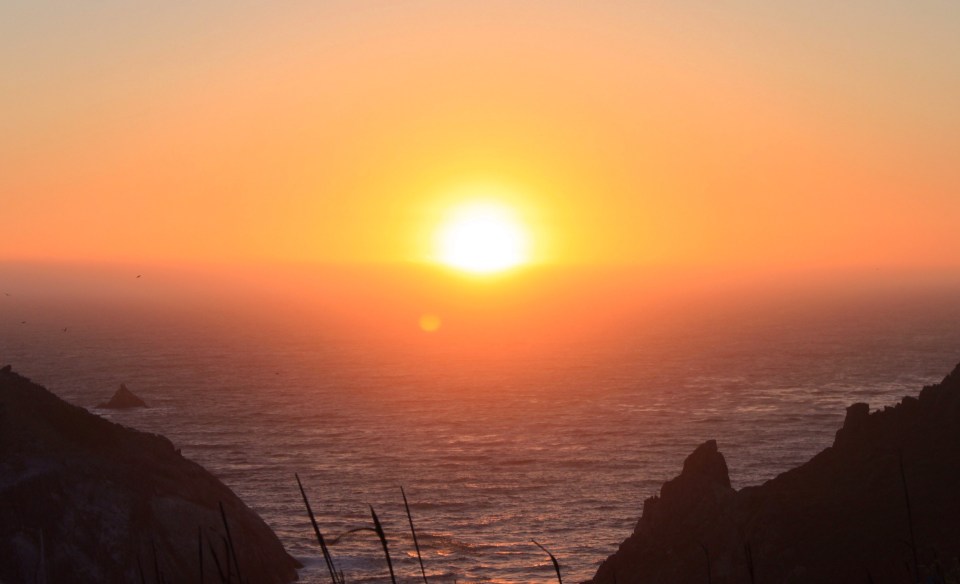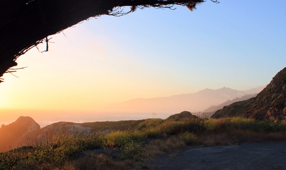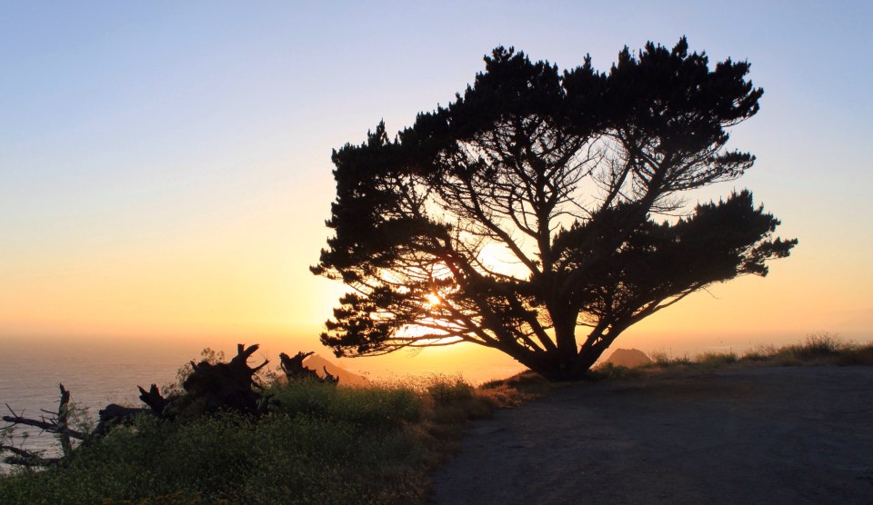 Weiter nach Norden fahren wir zunächst über die autobahnähnlich ausgebaute US101, zweigen aber in Laytonville westlich auf eine dieser kleinen, schönen, schmalen Bergstraßen ab. Nach gut 30km Kurbelei sind wir wieder an der Küste (Temperaturgegefälle von 32° auf 18°) und finden auch gleich einen Stellplatz mit grandioser Aussicht auf den Pazifik und den Sonnenuntergang.