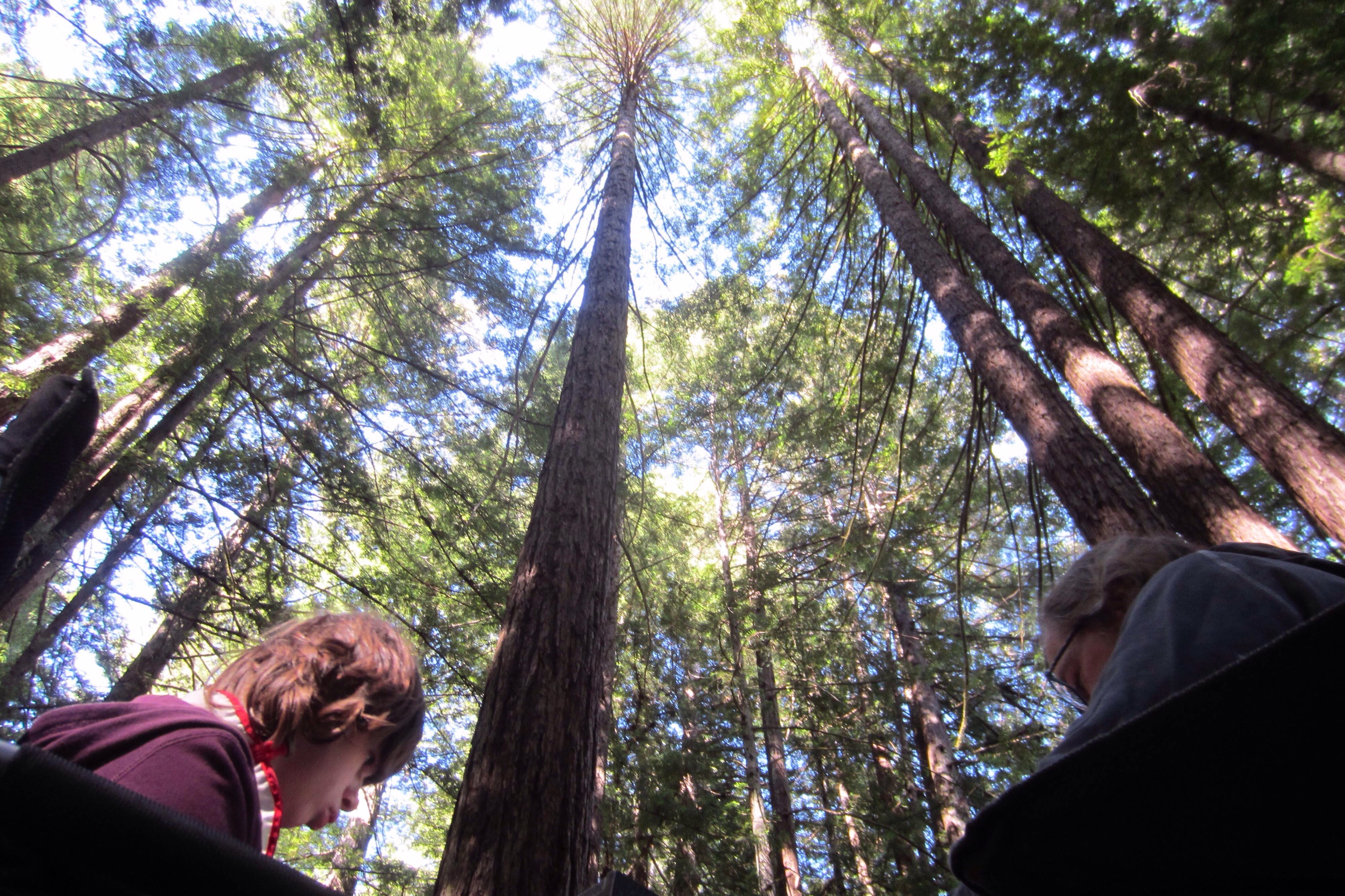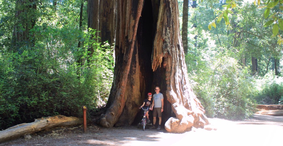Da der San Andreas Fault Trail an der Bruchlinie des großen Erdbebens von 1906 als für Lina zu schwierig zeigt, fahren wir weiter durch dichten Eukalyptuswald in den Big Basin Redwoods State Park, wo wir eine der letzten freien Campsites bekommen. Hier stehen wir unter riesigen, teilweise 1500 Jahre alten Redwoods.