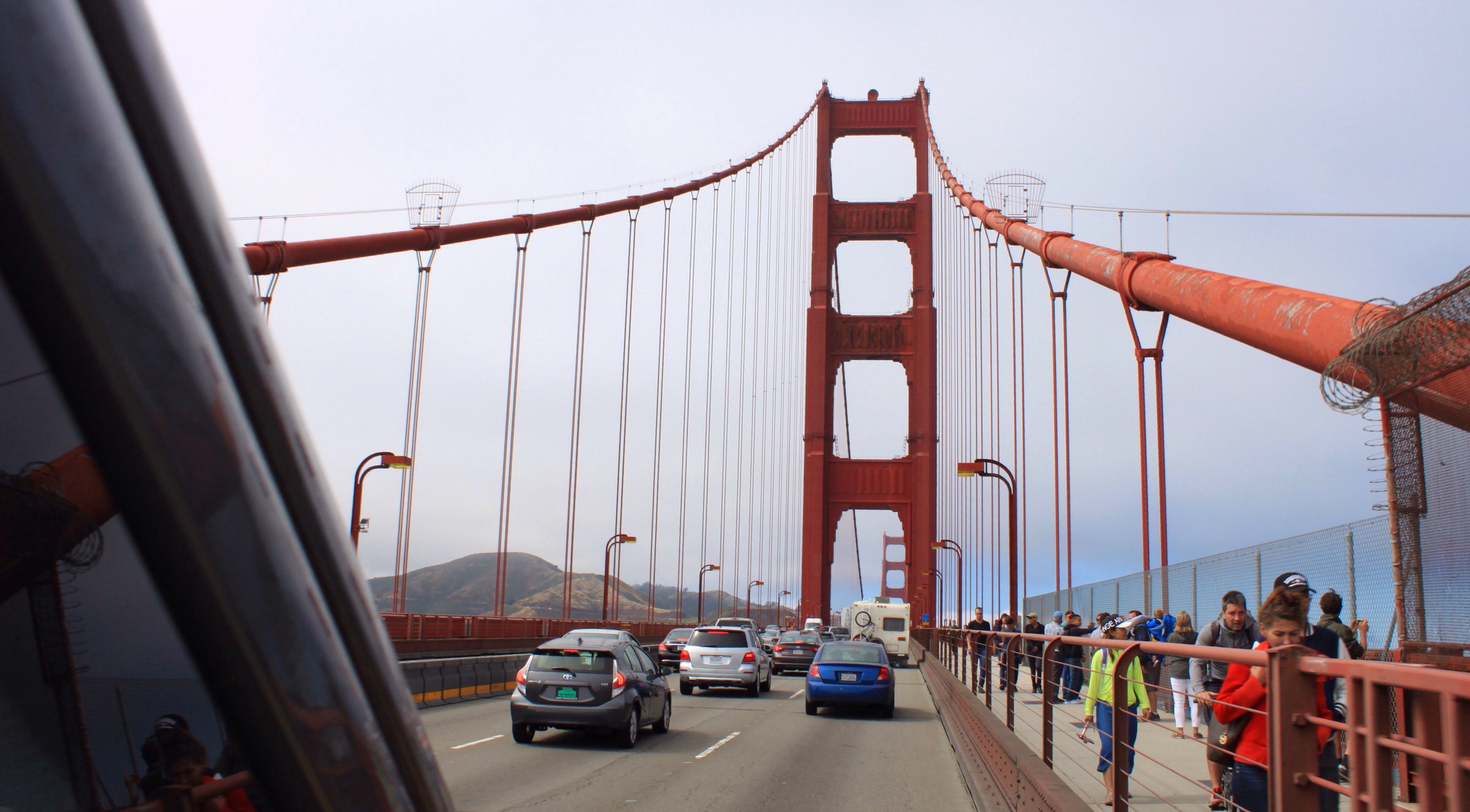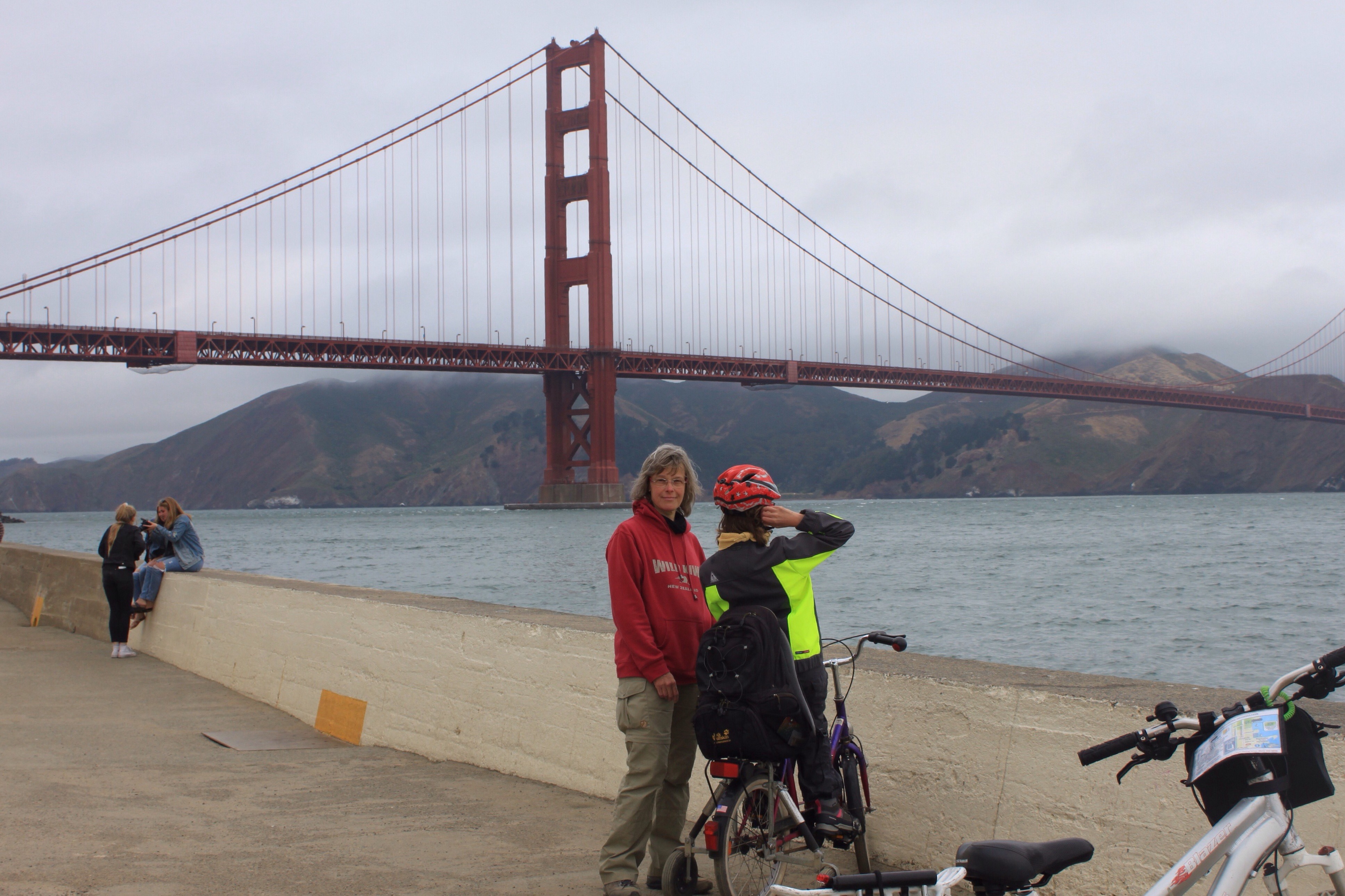 Dann, zurück auf unserem Übernachtungsplatz, machen wir noch einen ausgiebigen Spaziergang zur Golden Gate Bridge. Leider hat sich der Himmel bewölkt, aber dafür gibt es keinen Nebel.