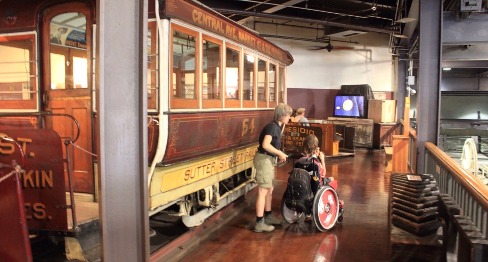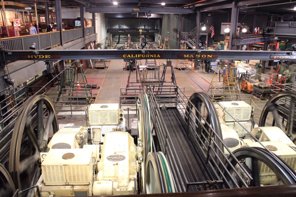 und dem Geburtstagsanruf in der Heimat folgt die etwas anstrengende Parkplatzsuche in der Nähe des Cable Car Museums. Die Steigungen sind teilweise abenteuerlich, und ein Automatikgetriebe würde die Sache sicherlich einfacher machen😉. Schließlich haben wir aber eine freie Parkuhr gefunden und sind im Museum, das eigentlich das Betriebsgebäude ist, angelangt. Hier gibt es eine kleine Ausstellung zur Geschichte der Cable Cars und im Erdgeschoss stehen die Motoren, die die Stahlseile (Cable) der Bahnen auch heute noch antreiben. Eine schöne Mischung aus Museum und Betriebsstätte.