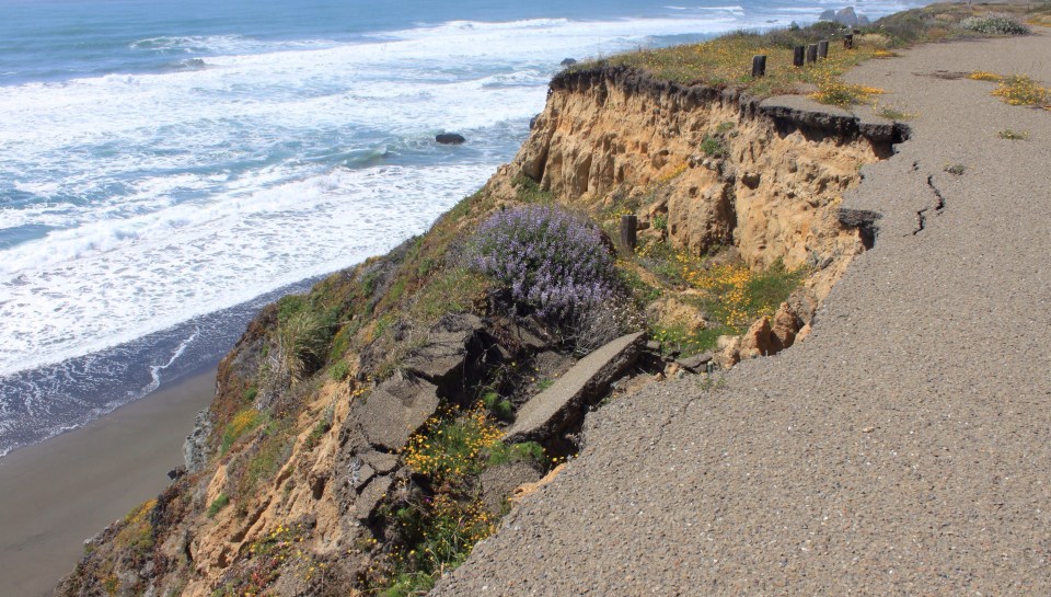 Ups, hier ist die alte Straße weggebrochen.