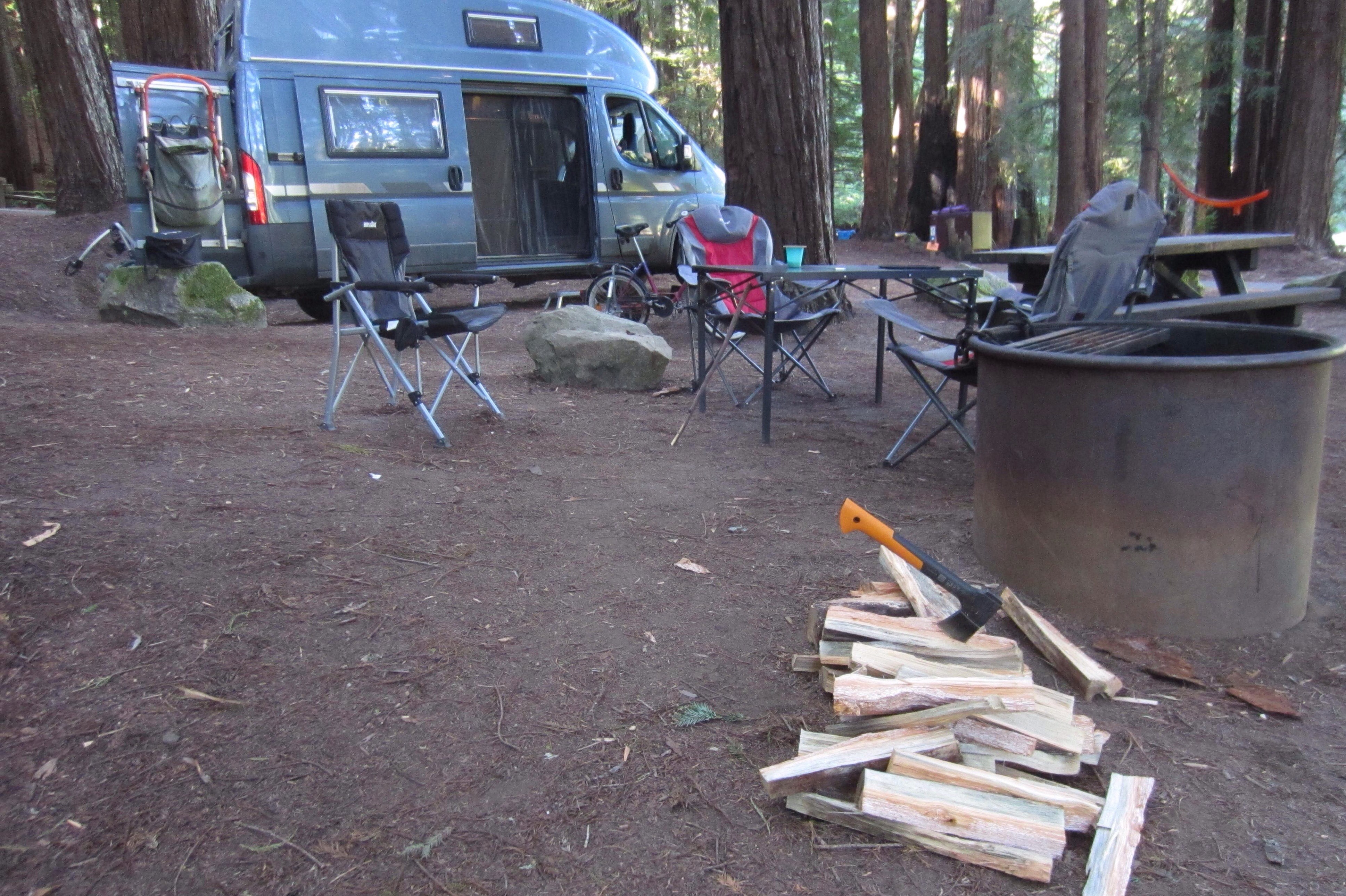 und fahren noch bis in den Samuel Taylon State Park (bitte nicht fragen, wer Samuel Taylor war😇). Übernachten kann man hier unter großen Redwoods und wir bekommen den letzten freien Stellplatz😊😊😊.
