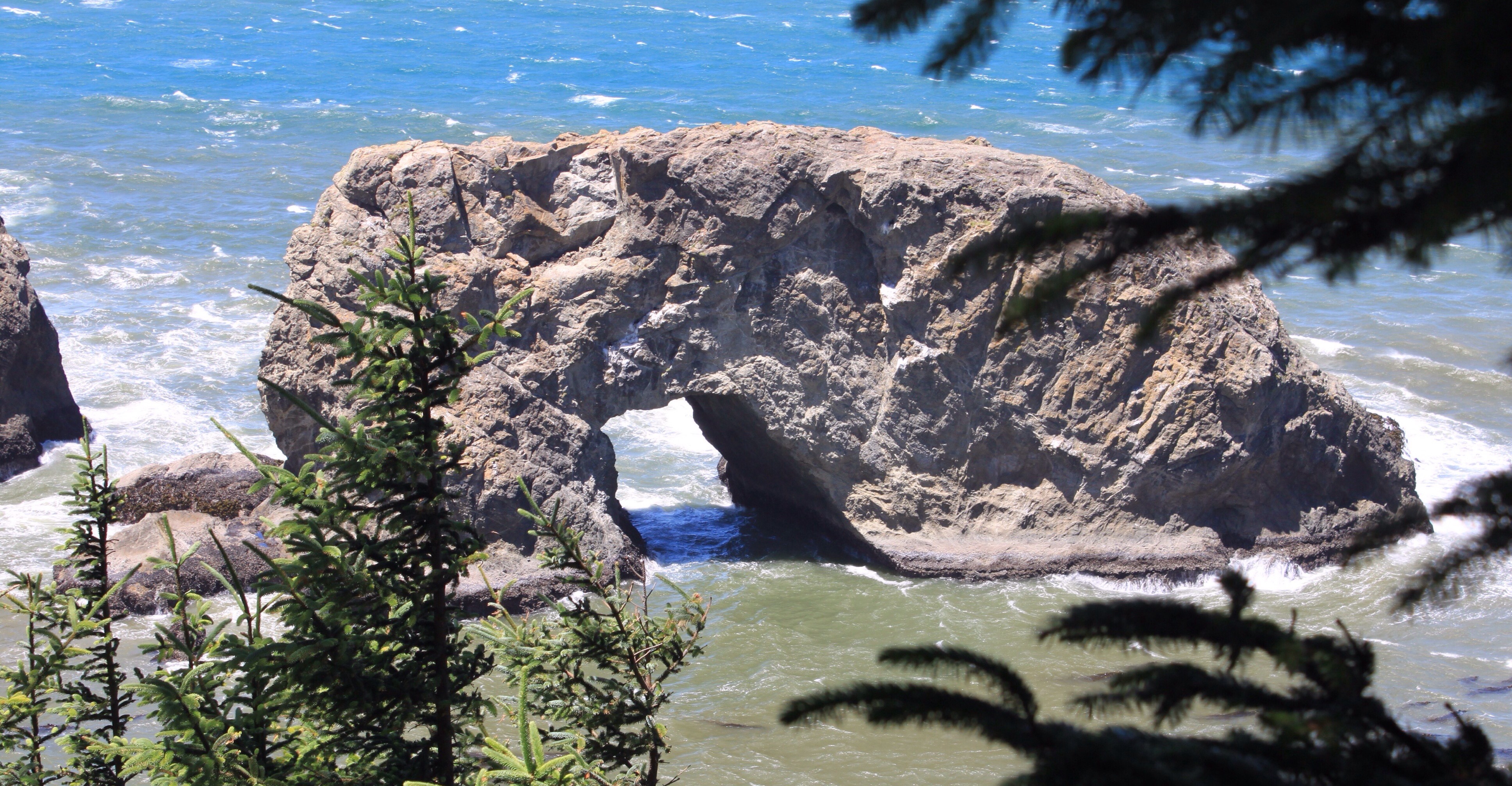 Heute verlassen wir California auf der US101 und fahren an der Steilküste von Oregon nordwärts. Wind und Wellen haben immer wieder richtige Kunstwerke geschaffen.