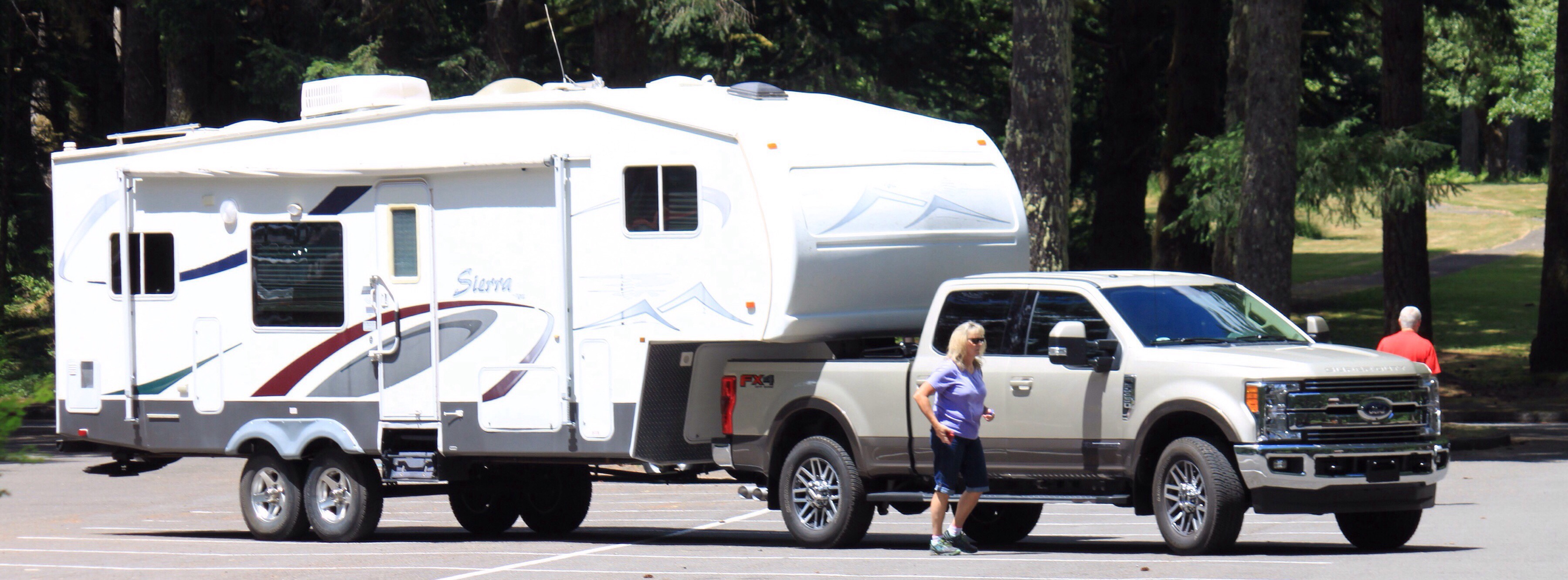 Auf dem Parkplatz steht so ein durchschnittliches Wohnwagengespann und Clemens hat gerade die Kamera in der Nähe.