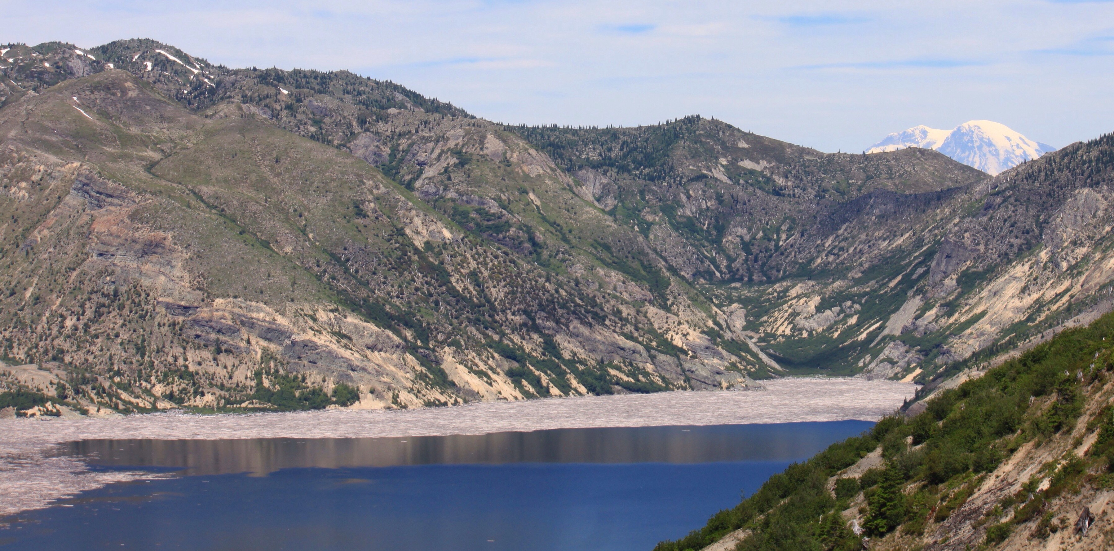 Das Holz im Spirit Lake wurde durch die Explosion der Nordflanke in den See gespült und liegt seit 38 Jahren im Wassser.