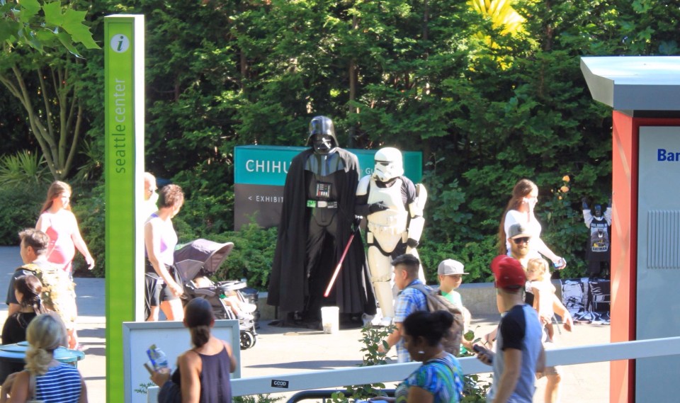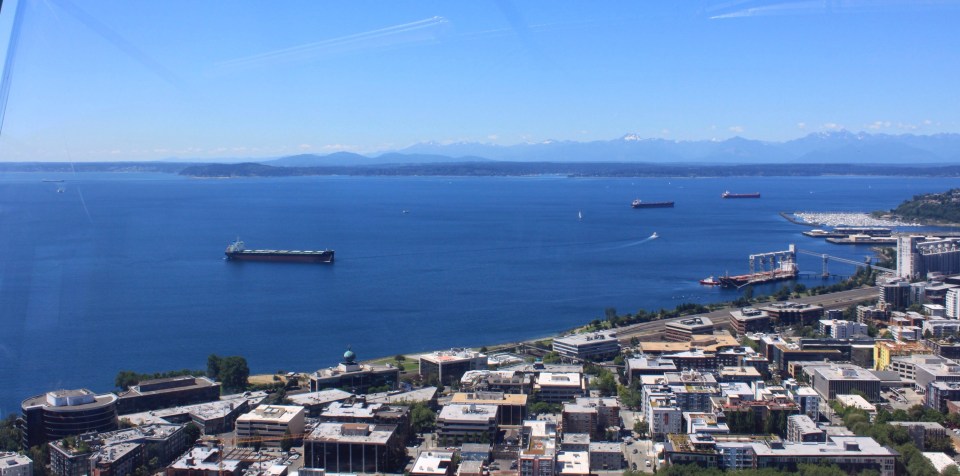 Dann steht Seattle auf unserer Liste. Wir finden am Seattle Center, dem Weltausstellungsgelände von 1964, gleich neben der Space Needle einen Schattenparkplatz und fahren mit dem Panoramaaufzug hoch. Toller Blick über die Stadt und den Puget Sound!