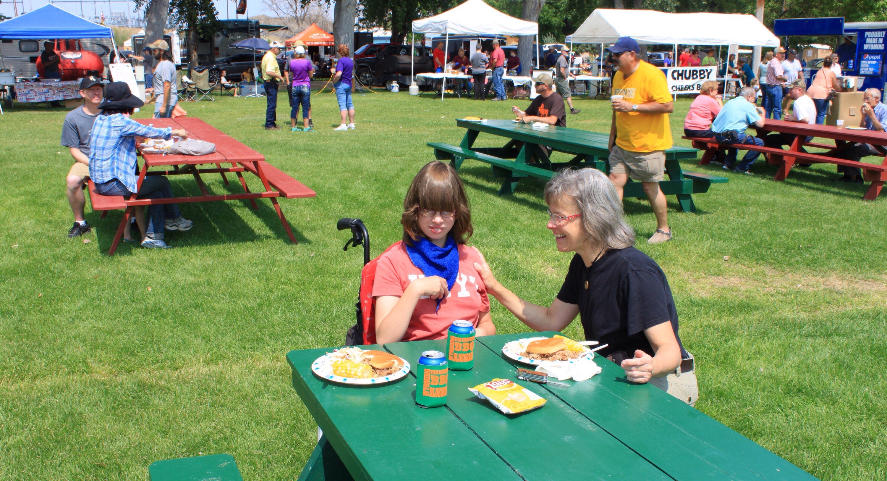 In Worland weist uns ein freundlicher Herr auf das BBQ-Fest am örtlichen Sportplatz hin. Da gerade Mittagszeit ist, passt das gut in unseren Plan.😀 Das Pulled Pork schmeckt hervorragend zu live gespielten Country Klängen. Tolle Stimmung, gutes Essen und top Wetter…😎😎😎