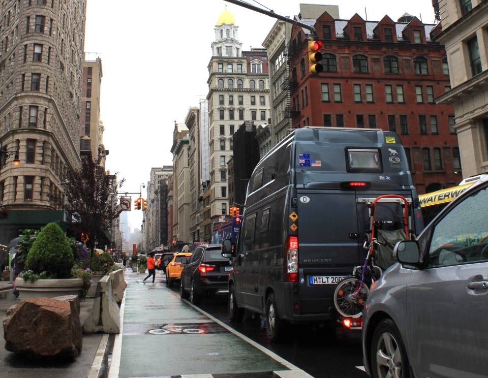 Uns fällt auf, dass NY viel grüner und fahradfreundlicher geworden ist. Teilweise sind komplette Plätze für den Autoverkehr gesperrt oder Grünzohnen und Fahrradwege engen die Straßen ein.