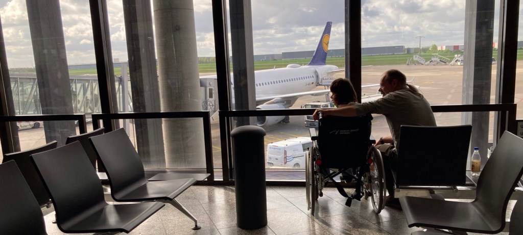Aber nun steht Holger pünktlich vor der Tür um uns zum Flughafen zu bringen. Lina bekommt wieder den Rolliservice direkt ab Auto und wir alle bekommen noch Besuch von Kirsten und Michael.