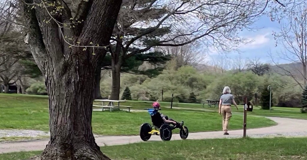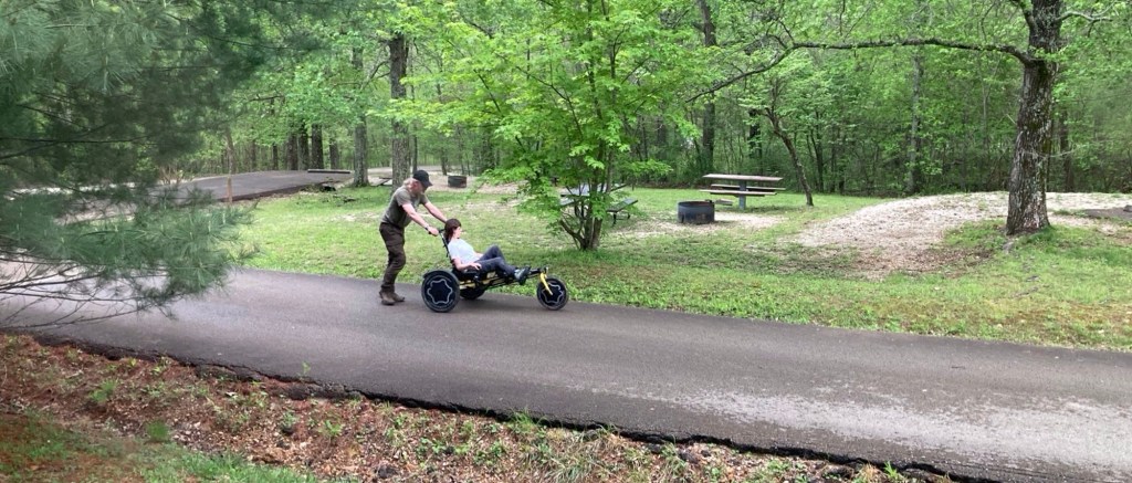 Morgen wollen wir eine alte Eisenbahnstrecke, die unten im Canyon verläuft und zum Radweg umgebaut ist, zu Fuß und mit Trike erkunden. Aber nun prasselt der Regen aufs Dach und der Schreiber ist müde… gute Nacht.💤