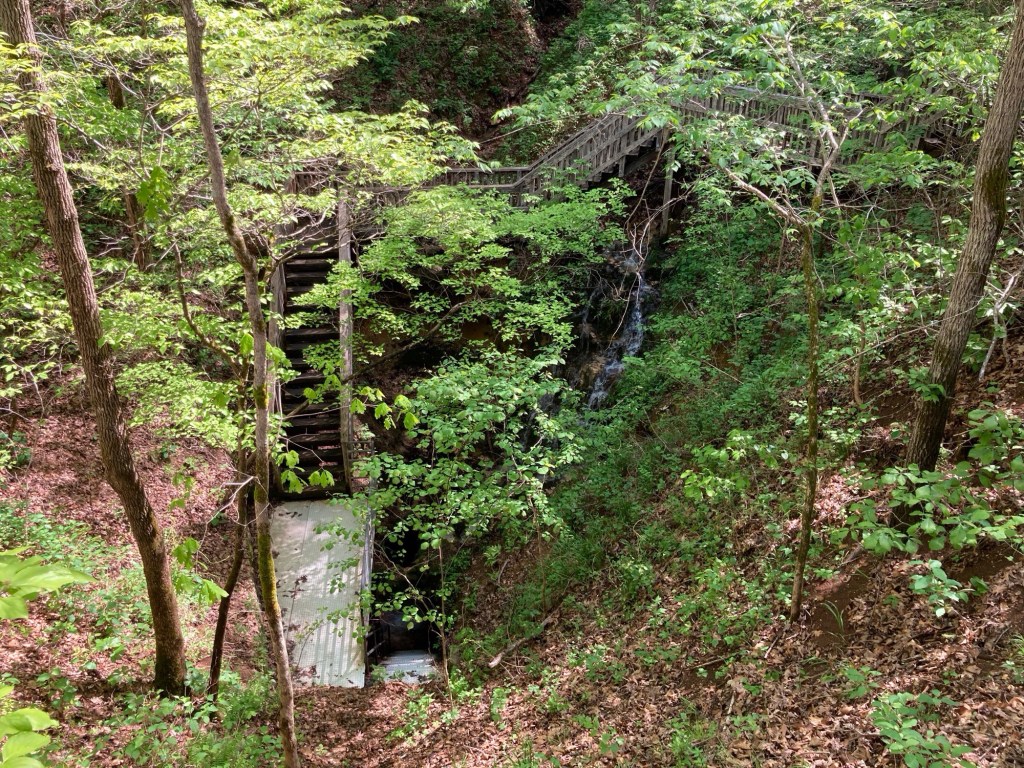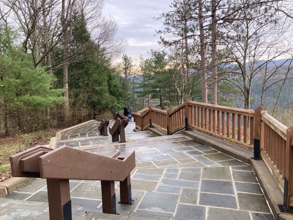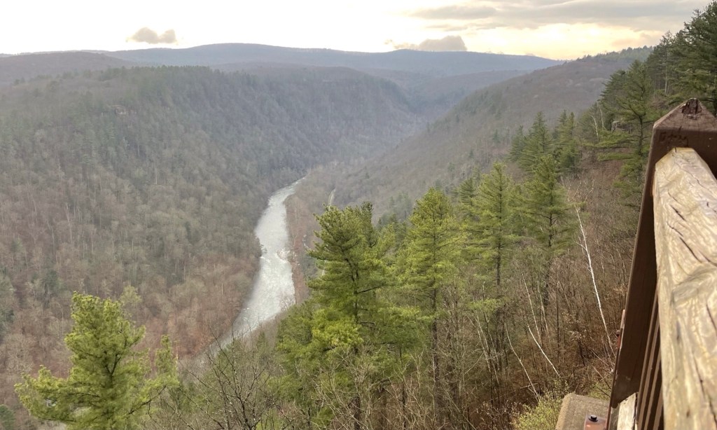 Unser heutiges Ziel ist der „Grand Canyon of PA“, der State Park Leonard Harrison liegt an der Ostseite der Schlucht und man kann wohl direkt von dort in die Schlucht hinunter sehen. Das ist nun unser Ziel. Vorher müssen wir schon wieder unsere Vorräte auffüllen und halten noch kurz bei Walmart an. So ausgerüstet erreichen wir, diesmal tatsächlich während der Öffnungszeit, den Park und checken für eine Nacht auf dem Campground ein. Bevor es anfängt zu regnen wandern wir noch zum Lookout und gucken uns den Canyon von oben an.