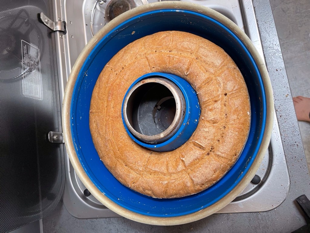 Nach einer Nacht im Allegany State Park nahe Jamestown gibt es das erste frische Brot aus dem Omnia Backofen. Sabine hat über die letzten Tage den Sauerteig angesetzt, gestern Abend den Teig fertig gemacht und heute während des Frühstücks hat das Brot gebacken.