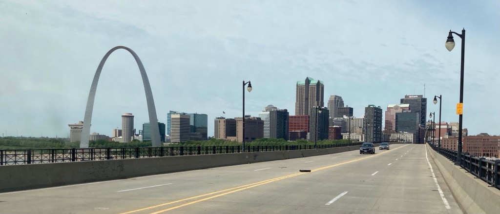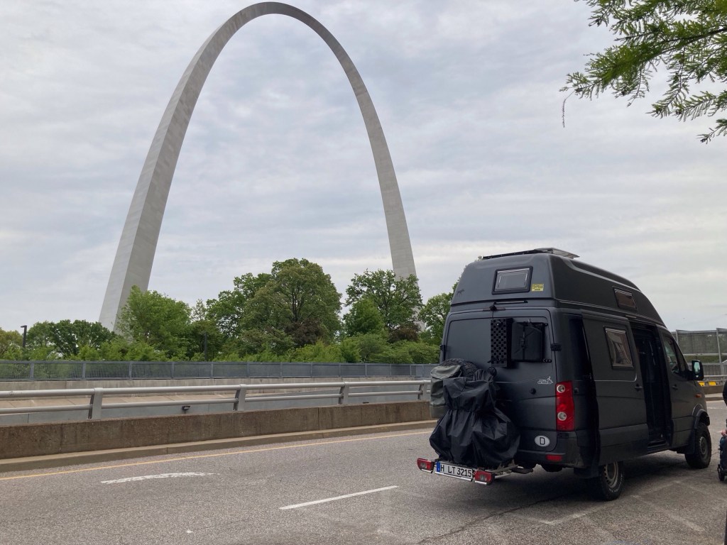 Unser nächstes Ziel ist Saint Louis, dazu überqueren wir den Mississippi und sind nun bereits in Missouri, dem zweiten Staat nach Indiana in dem die Central Time gilt. Also 7 Stunden Zeitversatz gegenüber Deutschland.