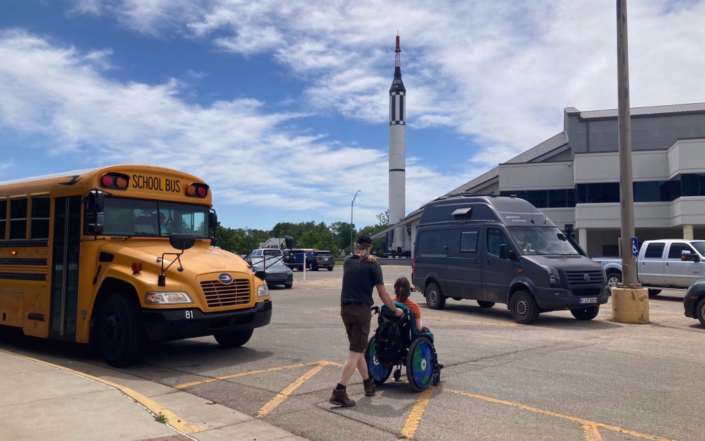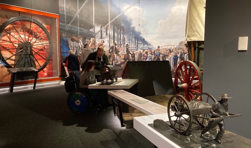 Im Visitor Center müssen wir leider erfahren, dass eine Auffahrt zum obersten Punkt für Rollifahrer nicht möglich ist. Den Rolli unten stehen lassen und Lina zu Fuß mit hoch zu nehmen erscheint uns zu wage, da wir nicht wissen, wie lange sie auf den Füßen durchhalten wird. So entschließen wir uns, das Museum unterhalb des Bogens anzusehen.