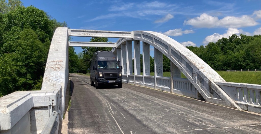 Zu Feier des Tages darf Sabine die Strecke fahren und Clemens darf auf dem Teil der Strecke, der außerhalb des Parks liegt, die Drohne in die Luft lassen. Die Landschaft ist für uns unerwartet aufregend und wir freuen uns schon auf morgen.