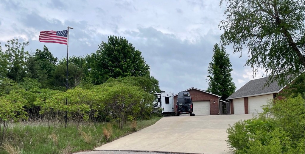 Wir buchen einen Übernachtungsplatz über „Boondockers Welcome“ und als wir ankommen, hat Kevin schon seine Garagenauffahrt für uns freigeschoben.