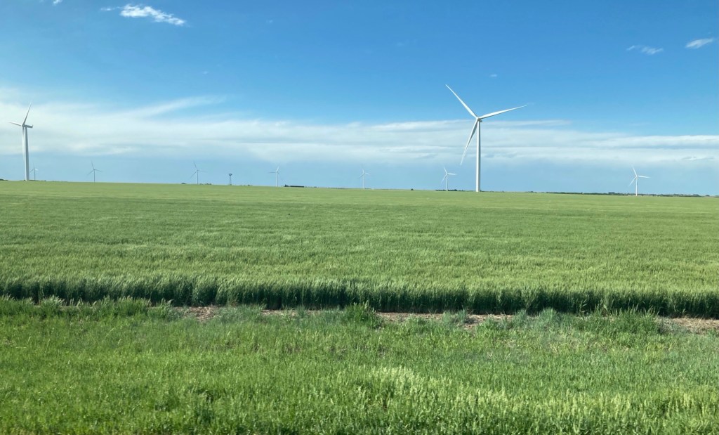 Wir fahren durch landwirtschaftlich genutzte Landschaft und was ist das am Horizont? Wenig später und viel näher erkennen wir einen riesigen Windpark, das ist der erste große in den USA, den wir sehen. Auch hier scheint sich was zu drehen. (ruhig zweideutig zu sehen)