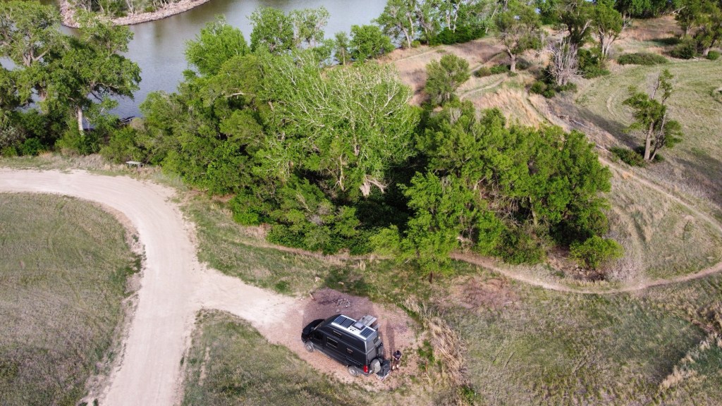 Nach einer absolut ruhigen Nacht beschließen wir „Hier bleiben wir gleich noch eine Nacht!“ Am Nachmittag bekommen wir dann doch Nachbarn. Es wehen englische und polnische Wortfetzen herüber und nach kurzer Zeit bekommen wir ein Bier angeboten und auch eine Einladung an ihr Lagerfeuer zu kommen. Ausgerüstet mit Kettensäge und Spaltaxt haben sie ein schönes Feuer in ihrer Mitte. Wir erfahren dass es alles Freunde sind, die größtenteils in Polen geboren sind und nun in den USA leben. Um Lina nicht zu viel zuzumuten, bleiben wir abends am eigenen Feuer und bekommen aber eine Portion gegrilltes Bison zum probieren gebracht. Wieder Gastfreundschaft pur! 😀