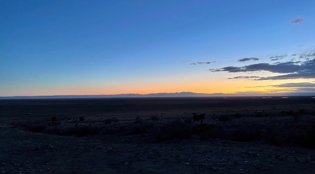 Am Abend stehen wir nun wieder auf BLM Land, so zwei, drei Meilen vom Highway 40 weg, und genießen die Ruhe, das Wetter, das Essen, den Sonnenuntergang und das Lagerfeuer. 😀