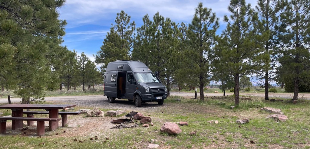 Da er so schön liegt fahren wir heute wieder zurück zu unserem Public Land Stellplatz. Das Wetter in den Bergen, und besonders hier (scheint uns), ändert sich schnell. So haben wir noch einen schönen Nachmittag.