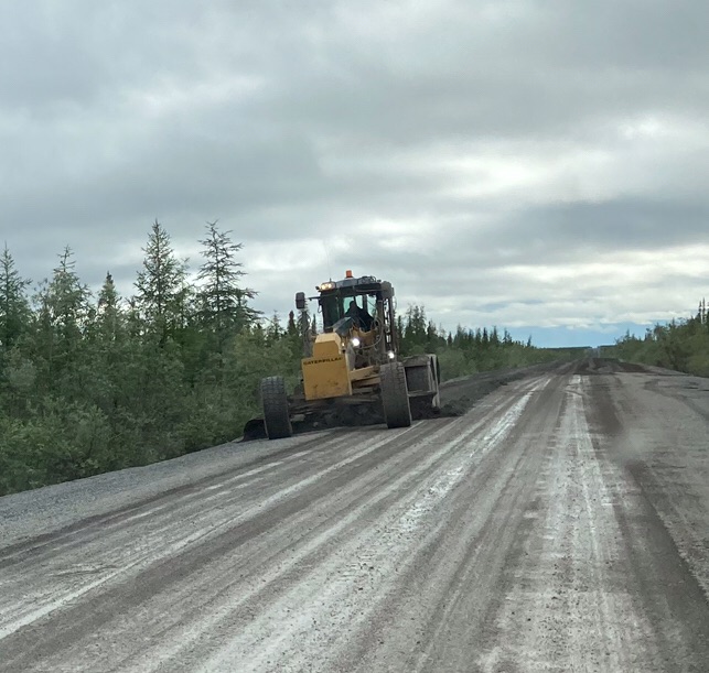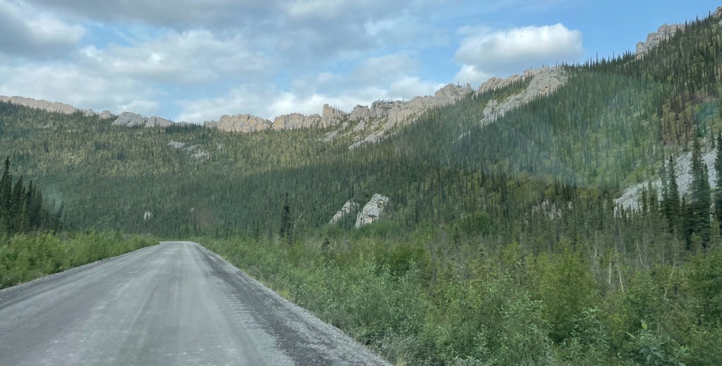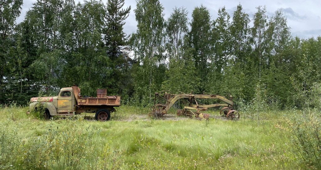 Die Canol Road wurde mal als Service Road für eine Ölpipeline gebaut. Auch eine „Errungenschaft“ aus dem 2. Weltkrieg, die Pipeline wurde aber nie richtig gebraucht und bald wieder stillgelegt. Die Straße ist geblieben. Hier und da sieht man noch altes Baugerät am Straßenrand.