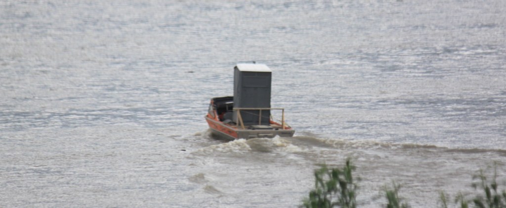 Ein wenig flussabwärts ist noch ein Sternwheeler am Ufer auf Grund gesetzt worden, der sieht nicht mehr so gut aus…