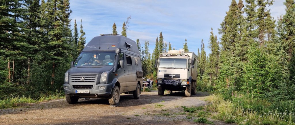 Den gestrigen Abend haben wir dann noch gemeinsam verbracht und heute trennen sich unsere Wege erstmal. Die beiden haben für Freddy einen Werkstatttermin in Fairbanks gebucht und wir wollen mit unserem Abenteuer Camper über den Denali Highway zum Denali National Park fahren.