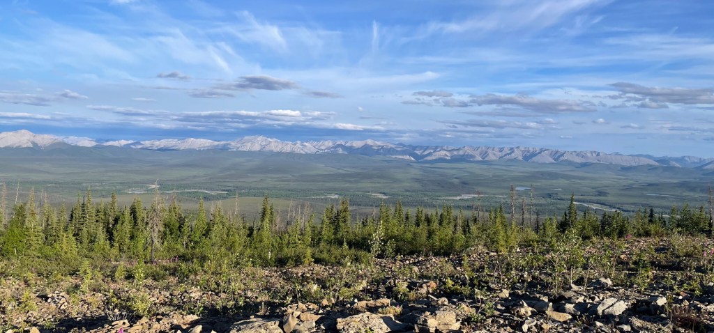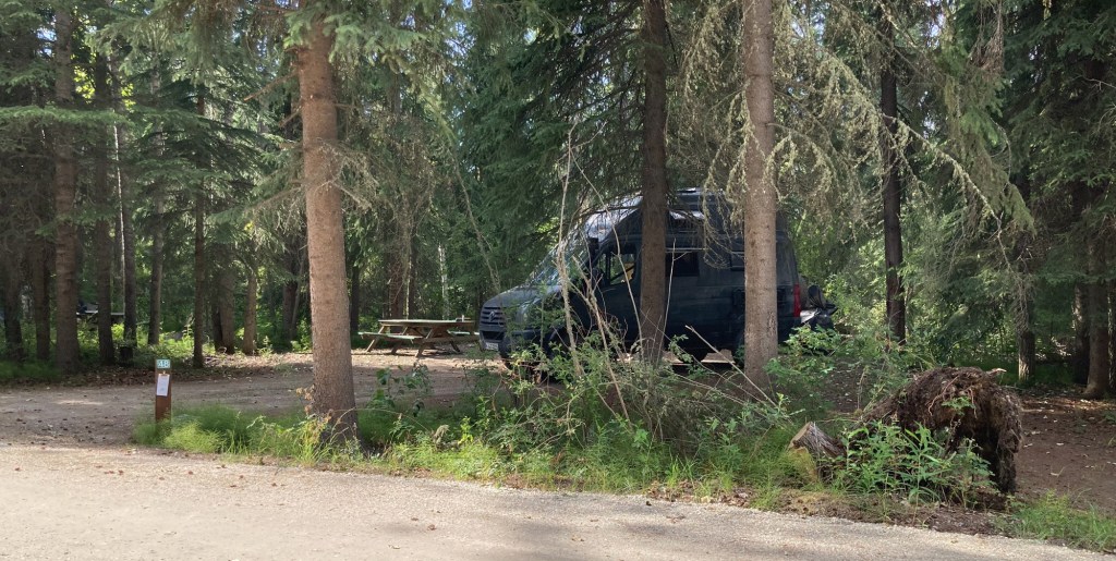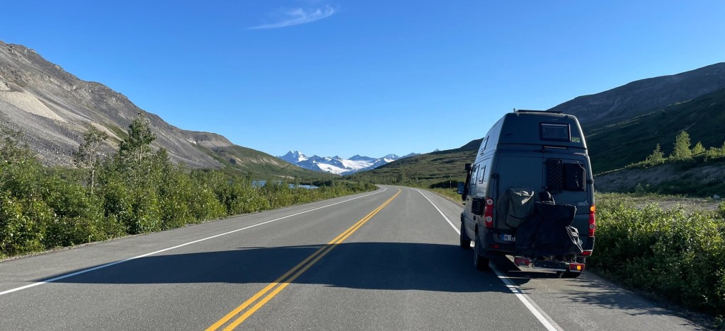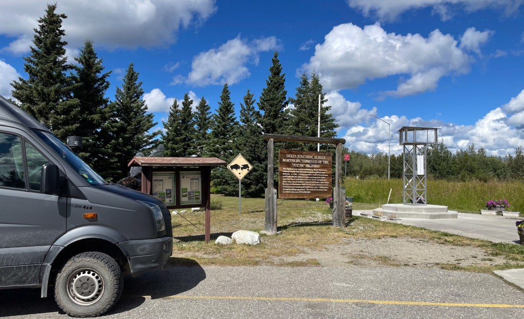 Entgegen unserer Planung (Pläne sind tatsächlich nur dafür da, sie möglichst oft zu ändern😂) biegen wir nicht auf den „Tok cut off“ nach Südwesten ab, sondern wollen den Alaska Hwy. noch bis zum Schluss in Delta Junction fahren. Zwischendurch ist auch noch eine Nacht in einer „Blumenwiese“ drin.