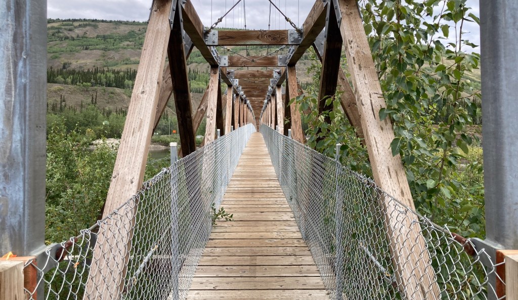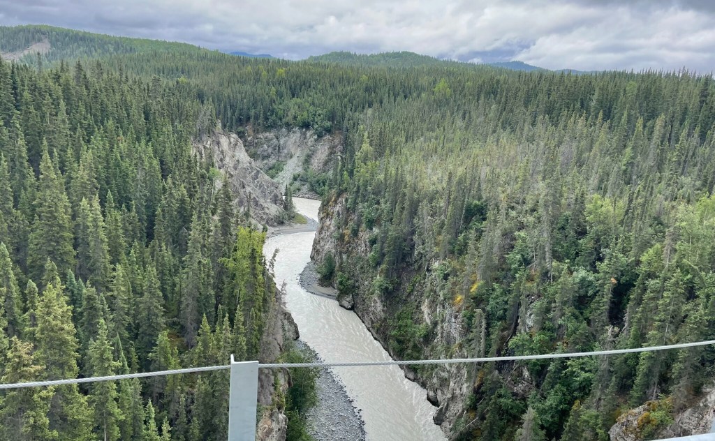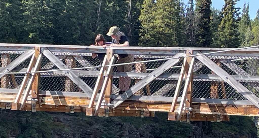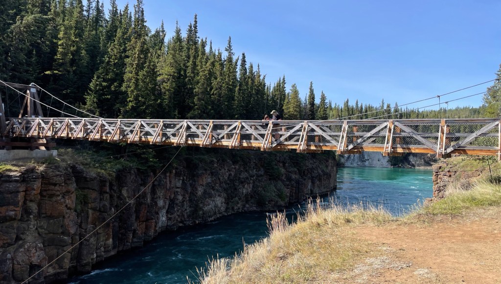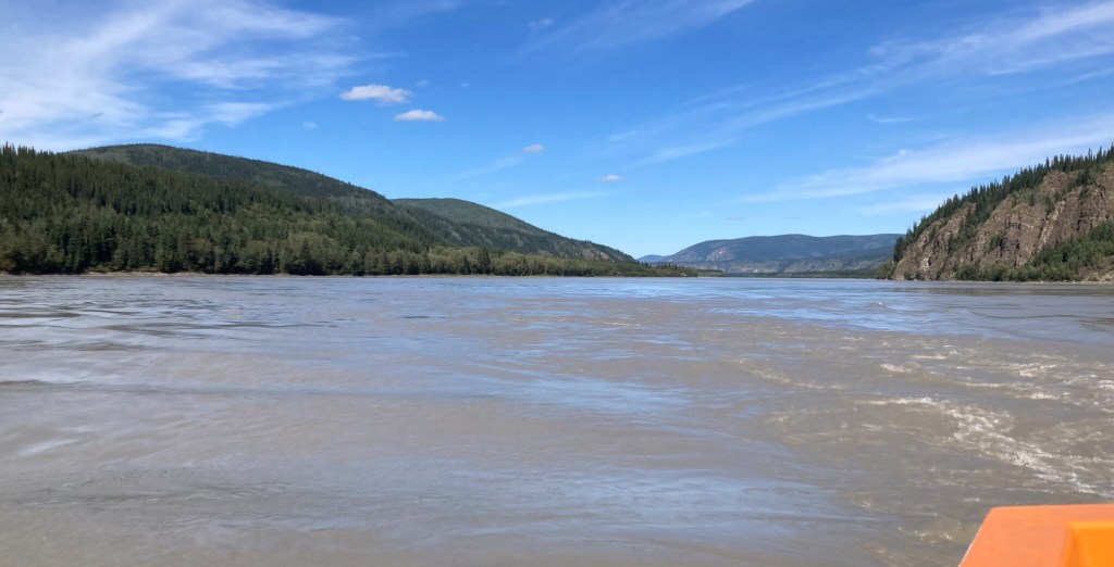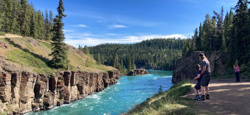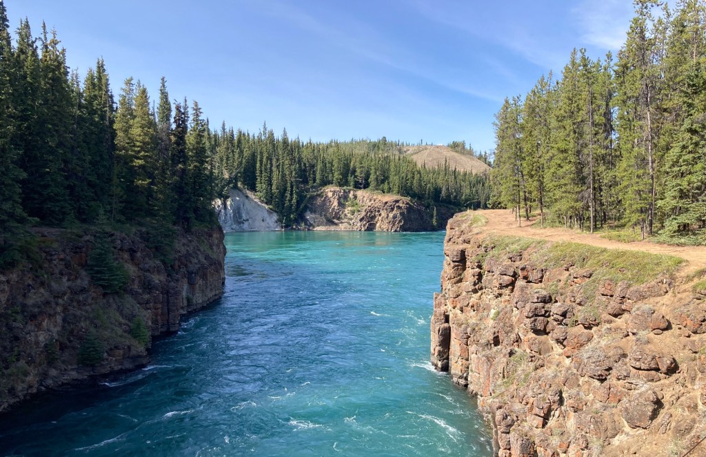 Zum Wochenende wird es wieder schön und wir gucken heute wieder Landschaft. Zuerst halten wir am Miles Canyon, einer Engstelle des Yukon Rivers.