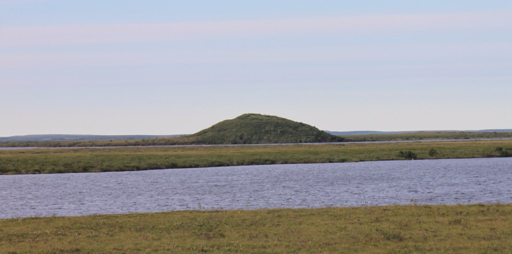 In der eher flachen Landschaft hier fallen uns „komische“ Hügel auf. Die „Pingos“ entstehen im Permafrost Boden und haben unten eine Eisblase, die den Boden nach oben drückt (oder so ähnlich 😉).