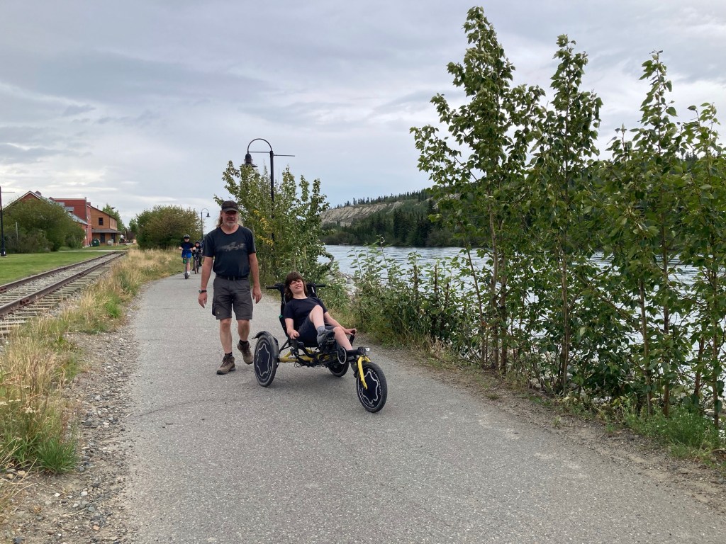 Whitehorse bietet sich zum Radfahren an, der Weg am Yukon River ist toll ausgebaut und Lina kann sich richtig austoben.