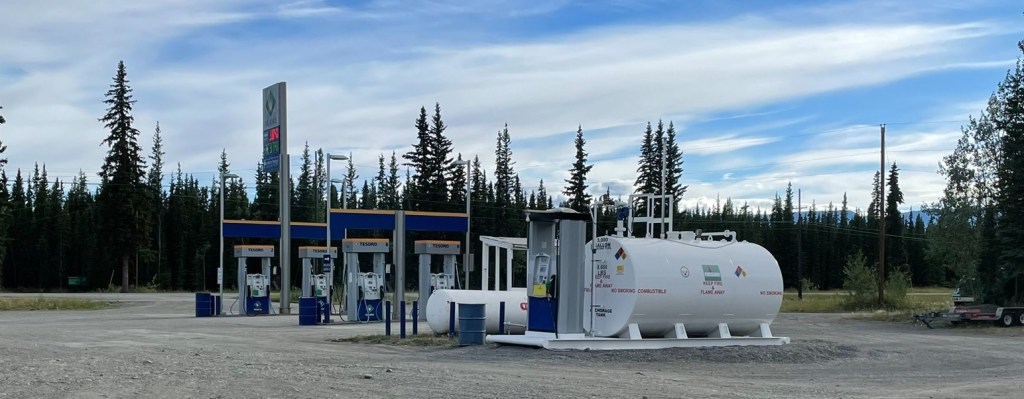 Über den Alaska Hwy. erreichen wir Tok und können tanken und an der Tankstelle auch gleich den Hochdruckreiniger am Waschplatz kostenlos nutzen.