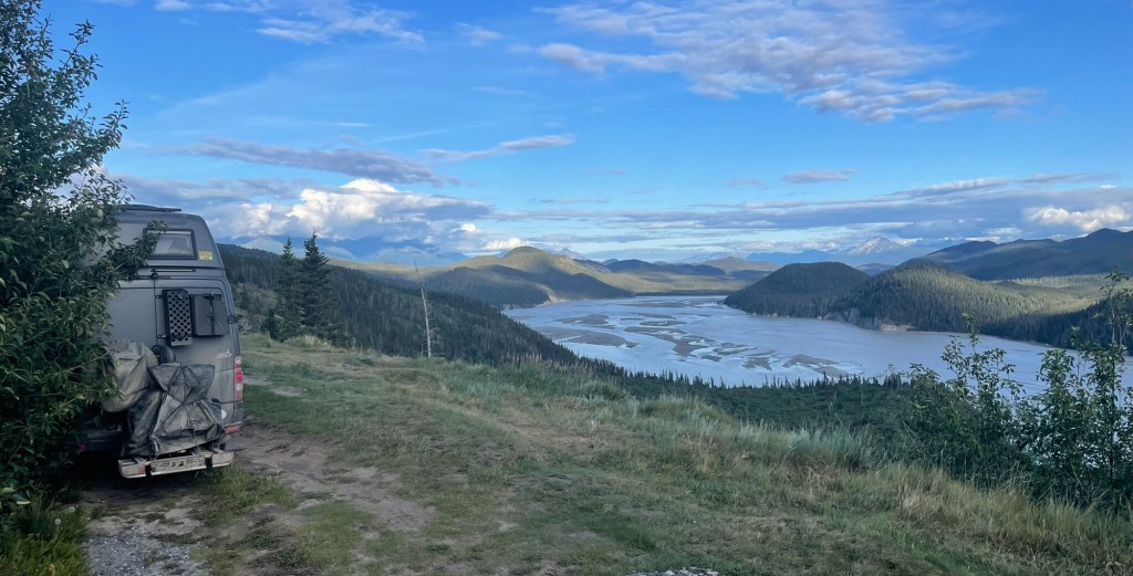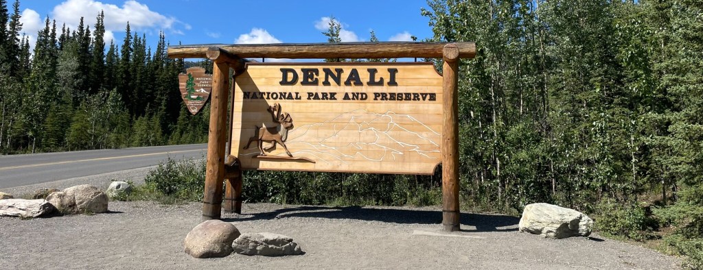 Im Denali NP gucken wir uns die Fahrzeiten der Transitbusse an und buchen für morgen eine Tour. Leider geht es zurzeit nur bis zur Meile 42 in den Park hinein, da ein Erdrutsch eine Brücke zerstört hat. Bis zur Fertigstellung der Neuen in zwei Jahren wollen wir nun doch nicht warten 😉. Da die Campingplätze vorne im Park alle belegt sind, oder wir einen Platz weiter drinnen für mindestens drei Nächte buchen sollen, fahren wir ein paar km „vor die Tore“ des NP und übernachten kostenlos am Fluss.
