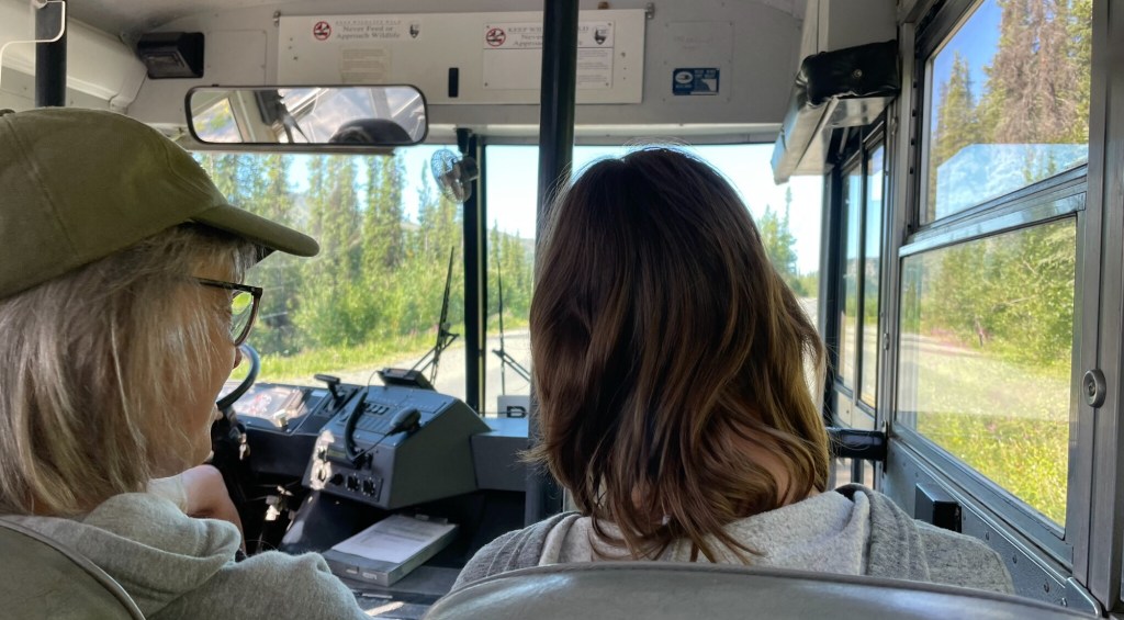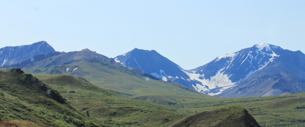 Die Fahrerin erzählt viel über den Park, die Geschichte und die Tiere. Wir sehen Ptermigan (siehe oben), die gern im Staub der Straße baden, Caribous, ein Marmot und zwei Grizzly’s. Das Wetter spielt auch heute mit, und wir erleben einen der wenigen Tage im Jahr, wo den Denali keine Wolken umgeben.