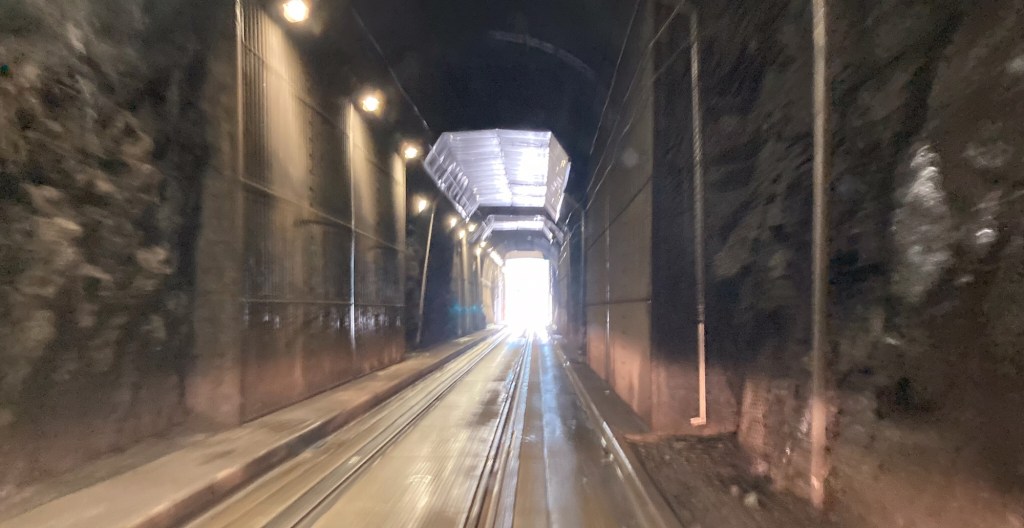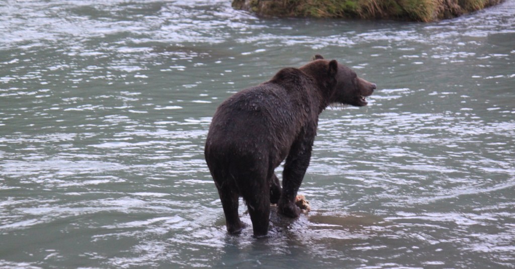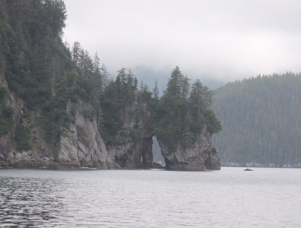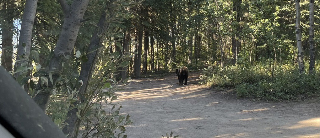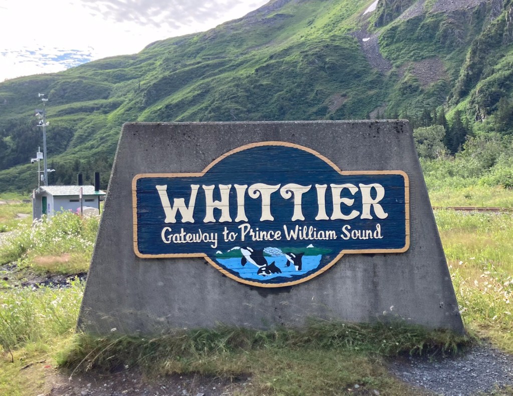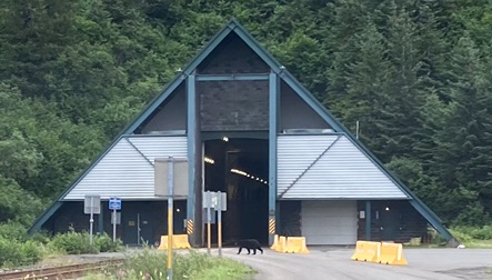 Wir fahren heute den angeblich längsten Straßentunnel Kanadas nach Whittier. Der Tunnel ist einspurig und ein kombinierter Straßen- und Eisenbahntunnel. Darum gibt es für den Autoverkehr festgelegte Zeiten. Wir haben doppeltes Glück, erstens ist unsere Fahrtrichtung gerade freigegeben und zweitens läuft uns direkt vor dem Tunneleingang ein Schwarzbär über den Weg.