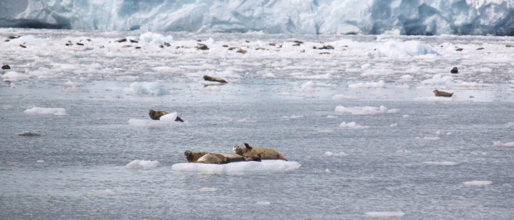 Die Fahrt ist einfach unbeschreiblich schön, wir sehen zuerst einen einzelnen Buckelwal, Seelöwen, Wasserfälle, verschiedene Gletscher des „Harding Icefield“, den Aialik Gletscher, der direkt in den Pazifik kalbt, Seehunde auf Eisschollen und dazwischen lassen sich die Seeotter ganz gemütlich treiben.