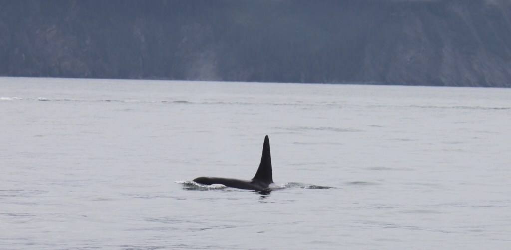 Auf dem Rückweg begleitet und noch ein Orca und uns wird klar, warum sie „Schwertwale“ heißen.