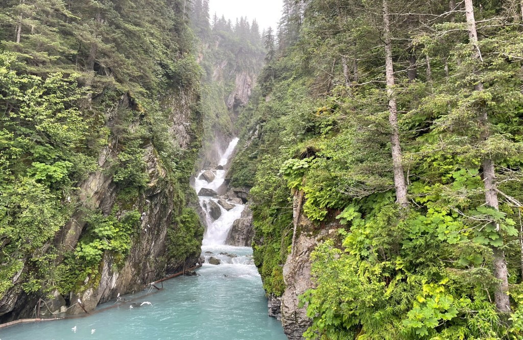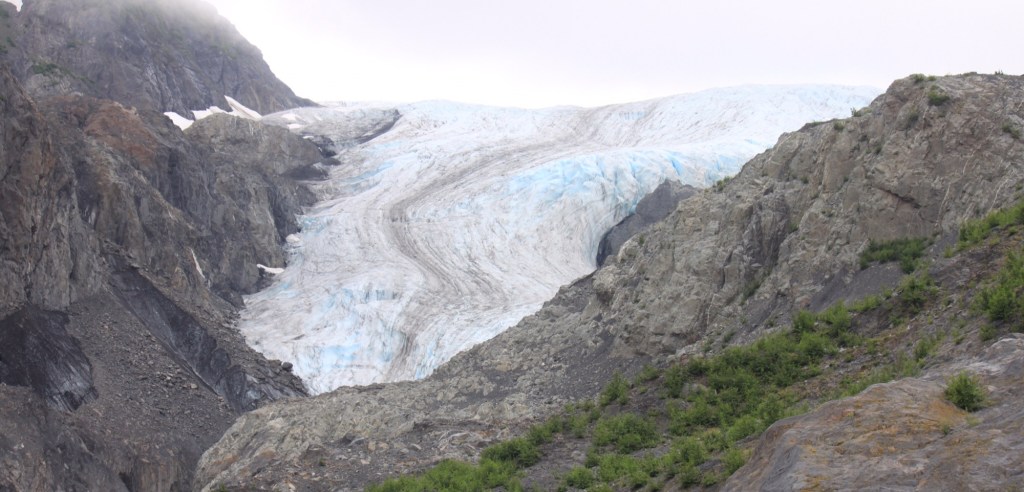 Da das Wetter heute etwas „zugezogen“ ist, fällt das Frühstück länger aus und wir können uns erst am Nachmittag aufraffen, den Exit Glacier, eine weitere Gletscherzunge den Harding Icefield‘s, zu erwandern. Mit dem Rolli müssen wir auf halber Strecke leider abbrechen, da der Weg zu steinig und unpassierbar wird. Wir trennen uns wieder und gehen das letzte Stück nacheinander, sodass Lina nicht allein bleiben muss.