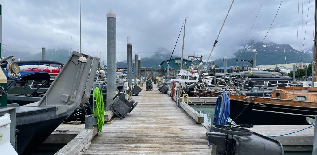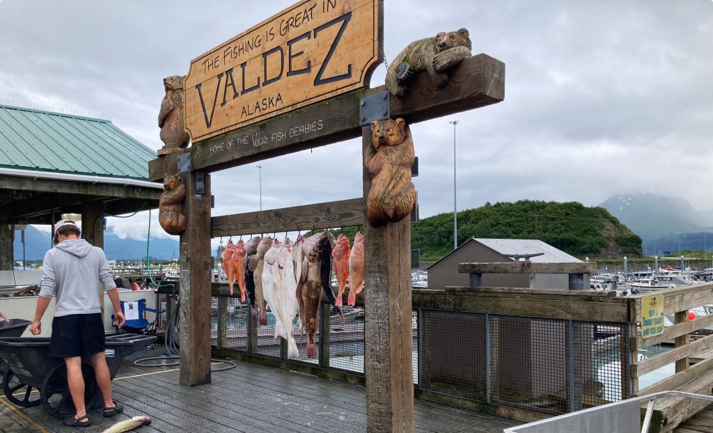 Valdez hat heute tiefhängende Wolken. Wir trödeln ein wenig durch die Stadt und den Yachthafen. Beobachten die Seeotter im Wasser und die Fischer mit ihrem Fang.