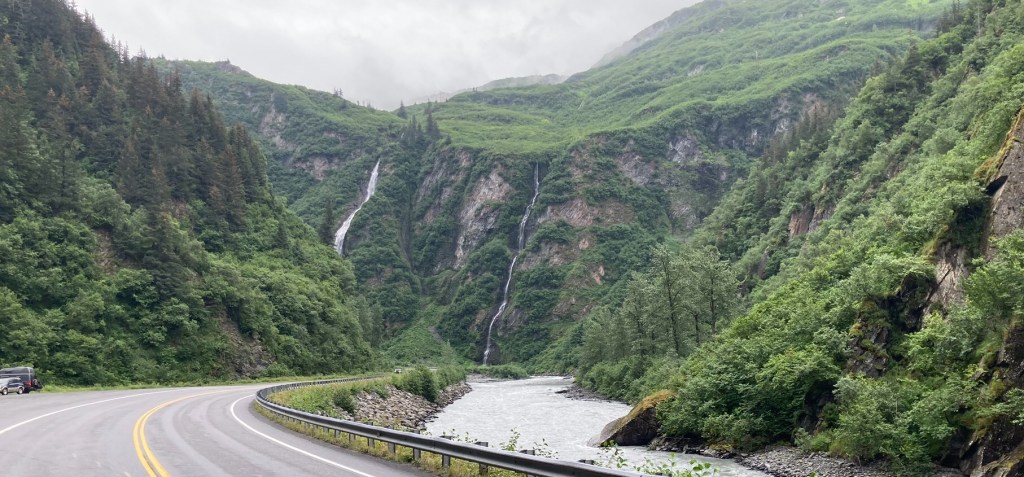 Der Richardson Hwy. führt vorbei an den Horsetail Falls,