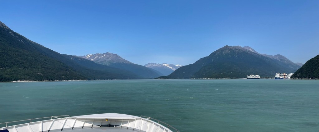 Skagway empfängt uns mit tollem Wetter und leider DREI Kreuzfahrern im Hafen!